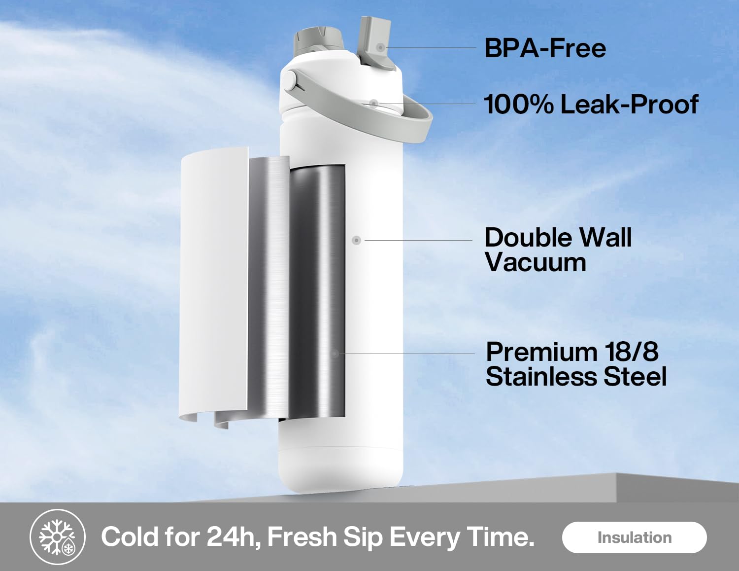 • No Spills, Just Thrills: Our stainless steel water bottle is leak-proof, even on exciting adventures; toss it in your bag without worrying about spills or moisture accidents
