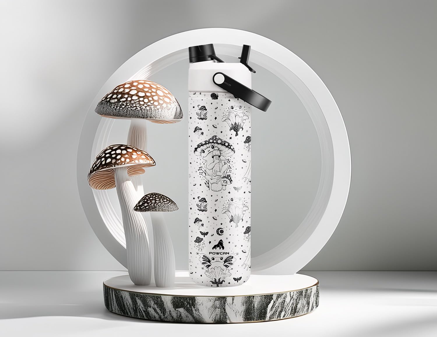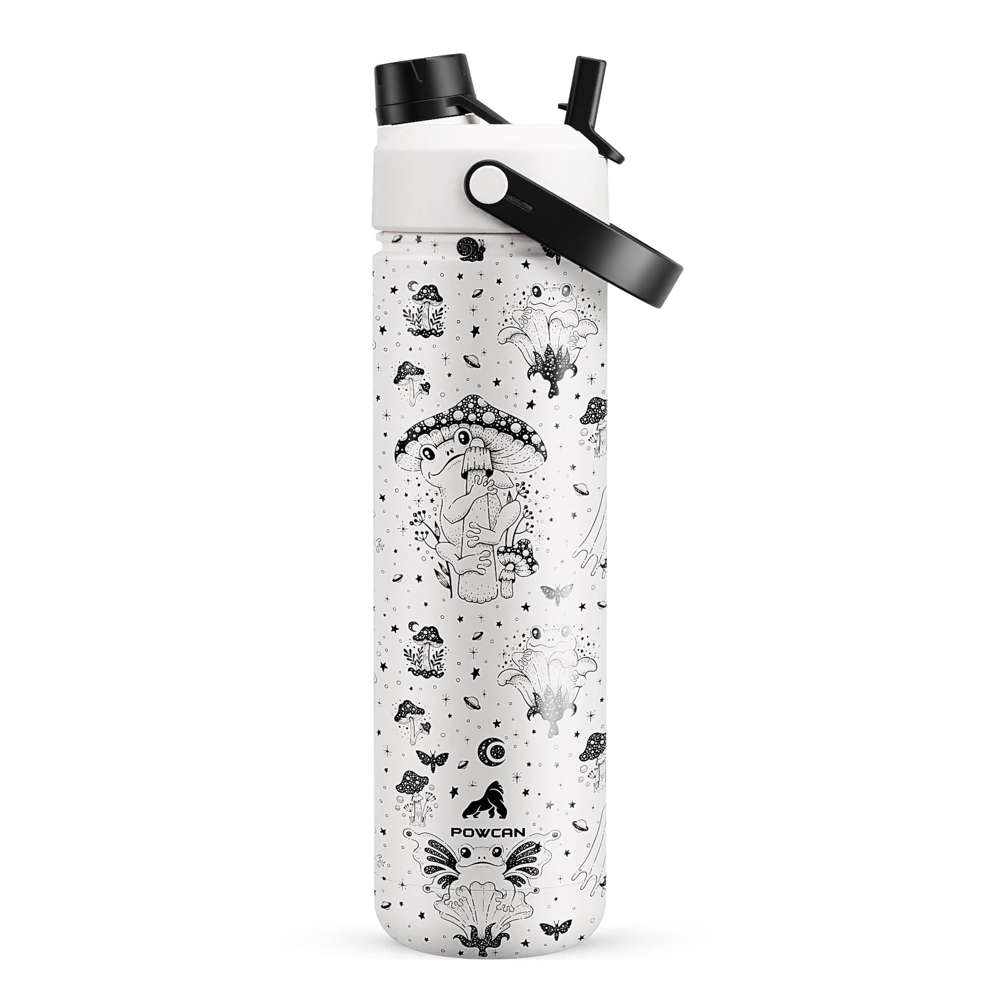 POWCAN 26 oz Insulated Water Bottle with 2-in-1 Straw and Spout Lid, Keep Cold 24H, Leak-Proof, Fits in Car Cup Holder, Stainless Steel Water Bottle for Sports, Travel, Gym, and School (Swamp Doodle)