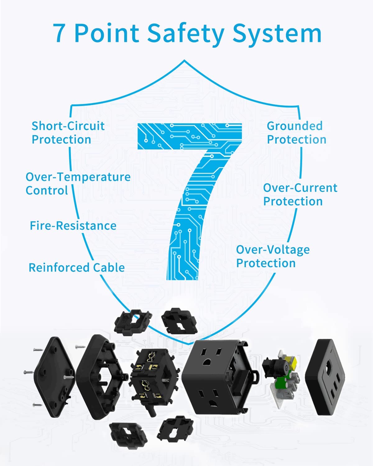 • Overload Protection & Superior Safety : Overload protection, over-current protection, over-voltage protection, circuit breaker and ABS PC fire-retardant material, all-round protection to keep you and your devices safe. 100% pure copper wiring, and flame retardant casing which is able to stand temperature up to 1382℉(750℃).