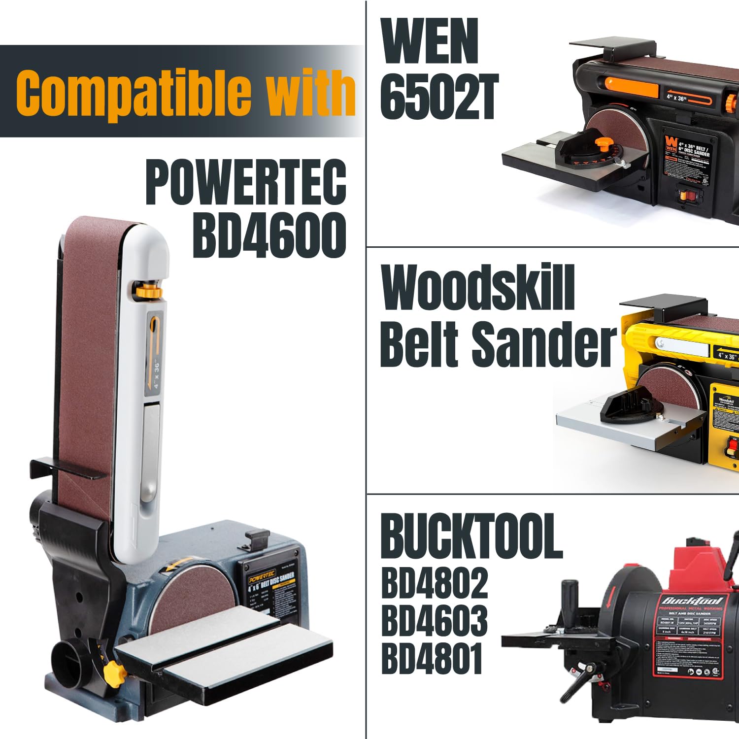 - Compatible with: POWERTEC BD4600 Belt and Disc Sander, WEN 6502T Belt and Disc Sander, Woodskil Belt and Disc Sander, BUCKTOOL BD4802/ BD4603/ BD4801 Belt and Disc Sander