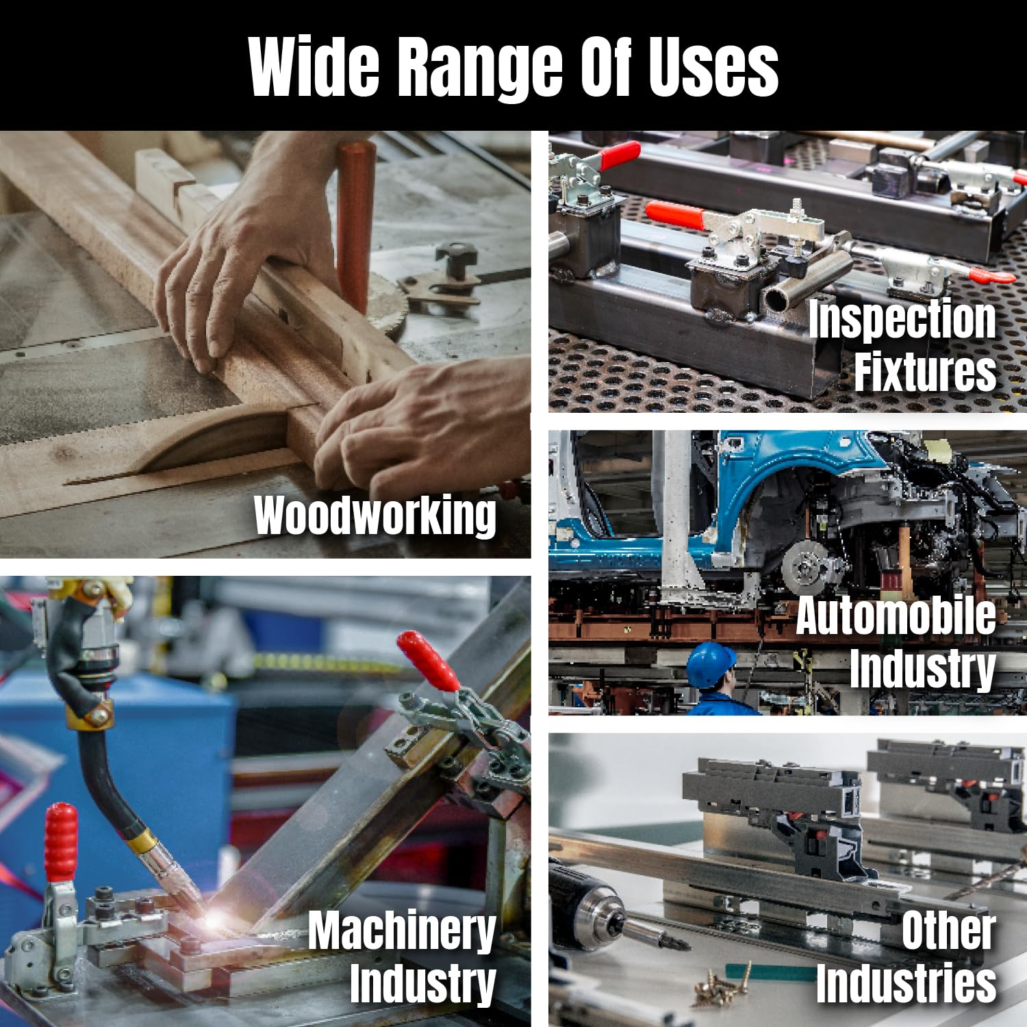 • FUNCTION: An essential woodworking hand tool addition to your jig assembly, delivering dependable and secure vertical hold down clamp action for your work pieces, jigs and fixtures, also works with 71416 Toggle Clamp Mounting Plate & POWERTEC T Track for woodworking projects (Note: for t-tracks that accept 1/4” hex head bolts and 5/16" t-bolts)