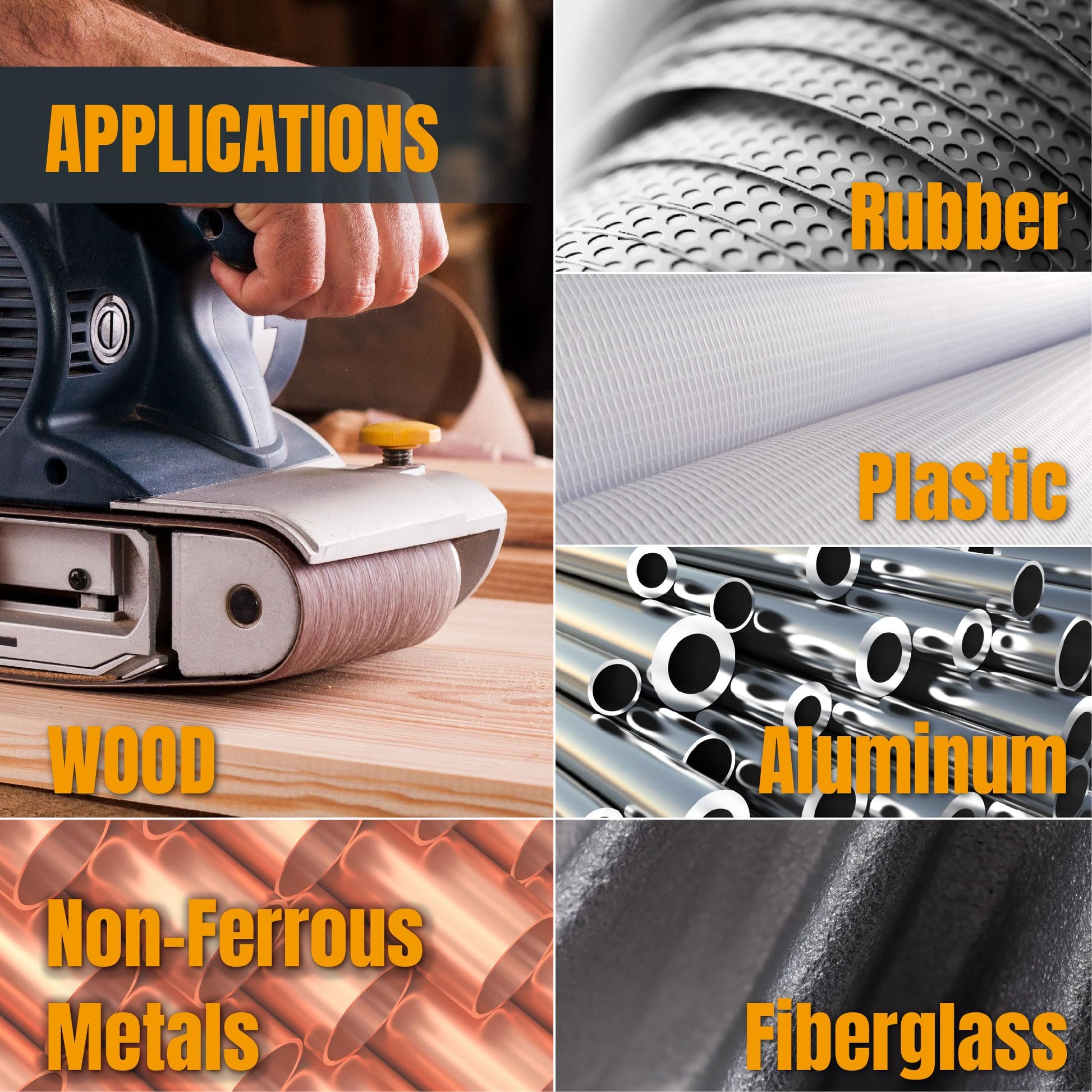 - USAGE: Works with an assortment of belt sanding machines and applications – providing a heavy duty stripping and sanding tool for wood, aluminum, fiberglass, rubber, plastic and non-ferrous metals.