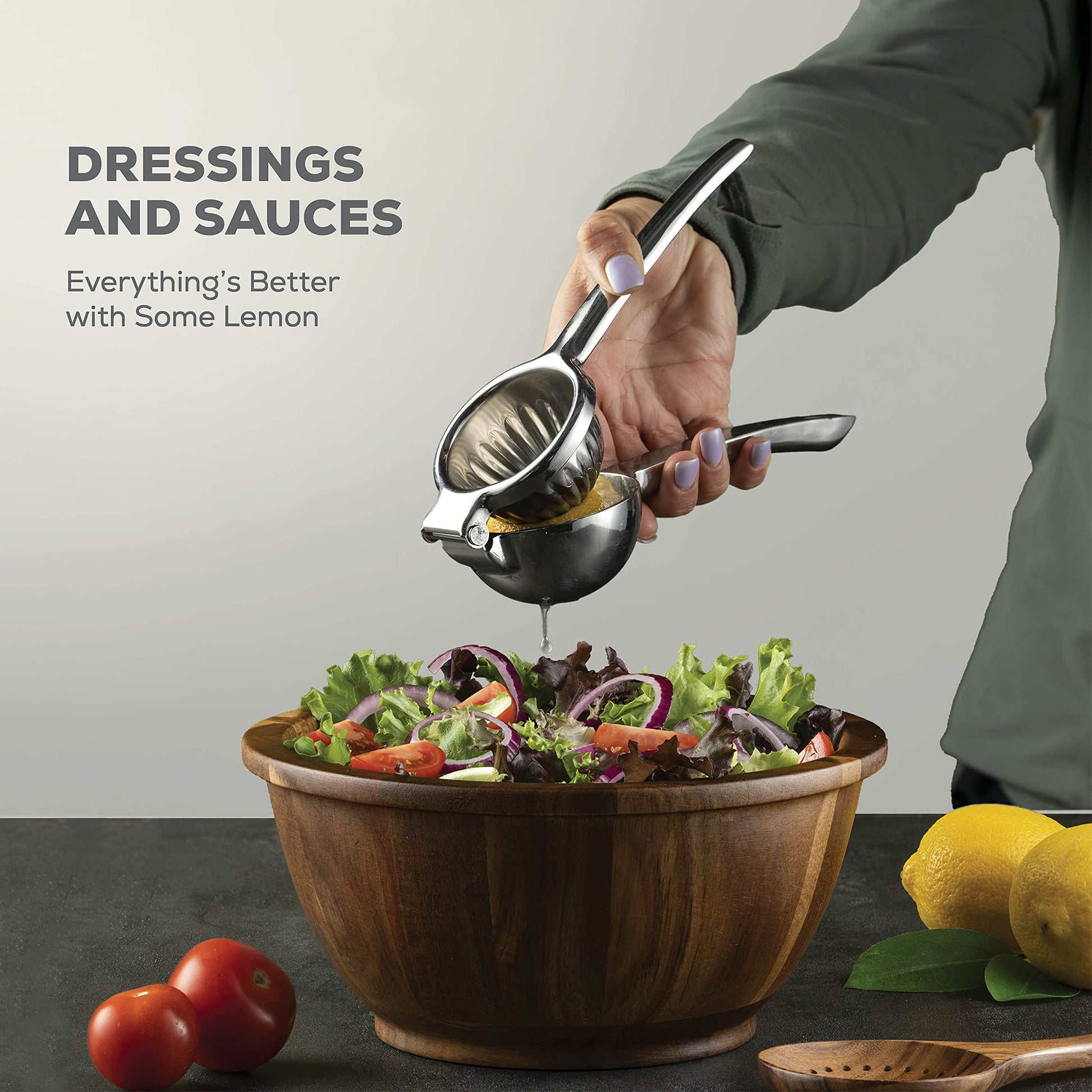 • LARGER MOUTH - Ideally sized to fit lemons, limes, and oranges, without having to cut the fruit into many pieces. Slice in half, place the fruit face down, and bring down the lever with a single motion