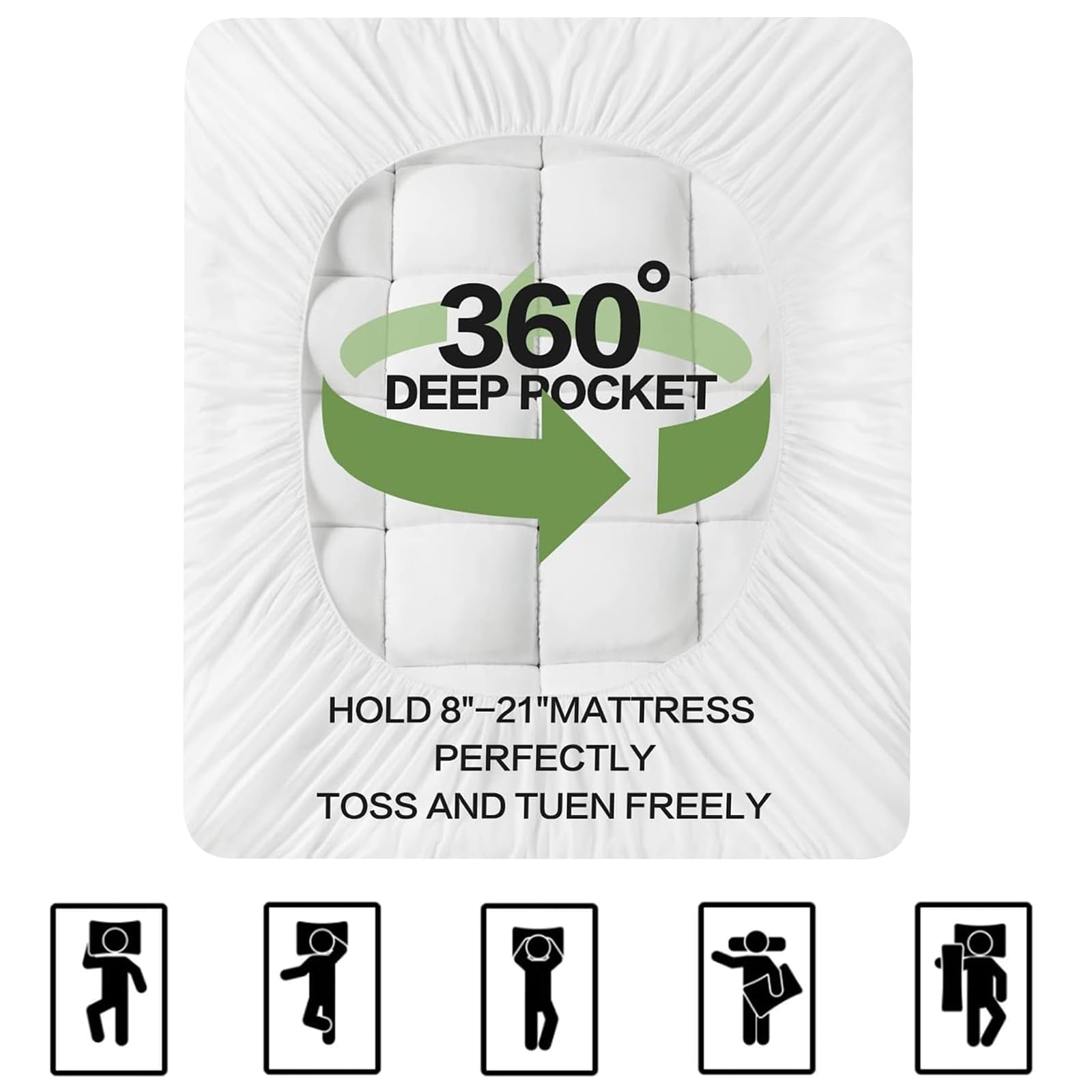 • 【DEEP ELASTIC POCKET】Fits mattresses from 8' - 21'. Our deep pockets are designed for all types of mattresses.Ensures your mattress topper stays firmly in place