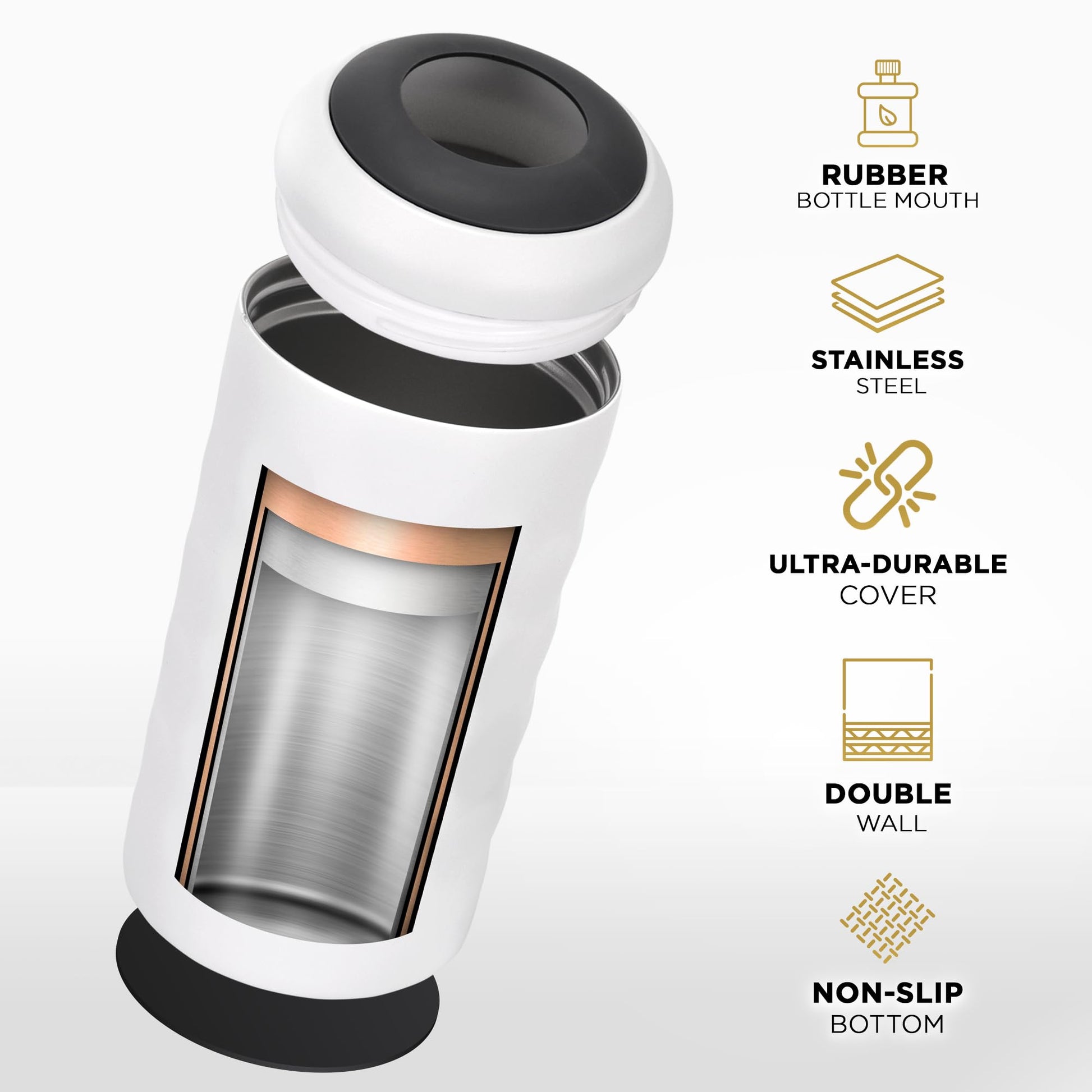 • COLD WITHOUT THE ICE - Wine Bottle Chiller is a revolutionary Wine Cooler that ditches the sweaty and messy Wine Buckets. It is designed with double vacuum-insulated walls that keep your pre-chilled wine or champagne bottle cool for up to 6 hours – no ice needed!