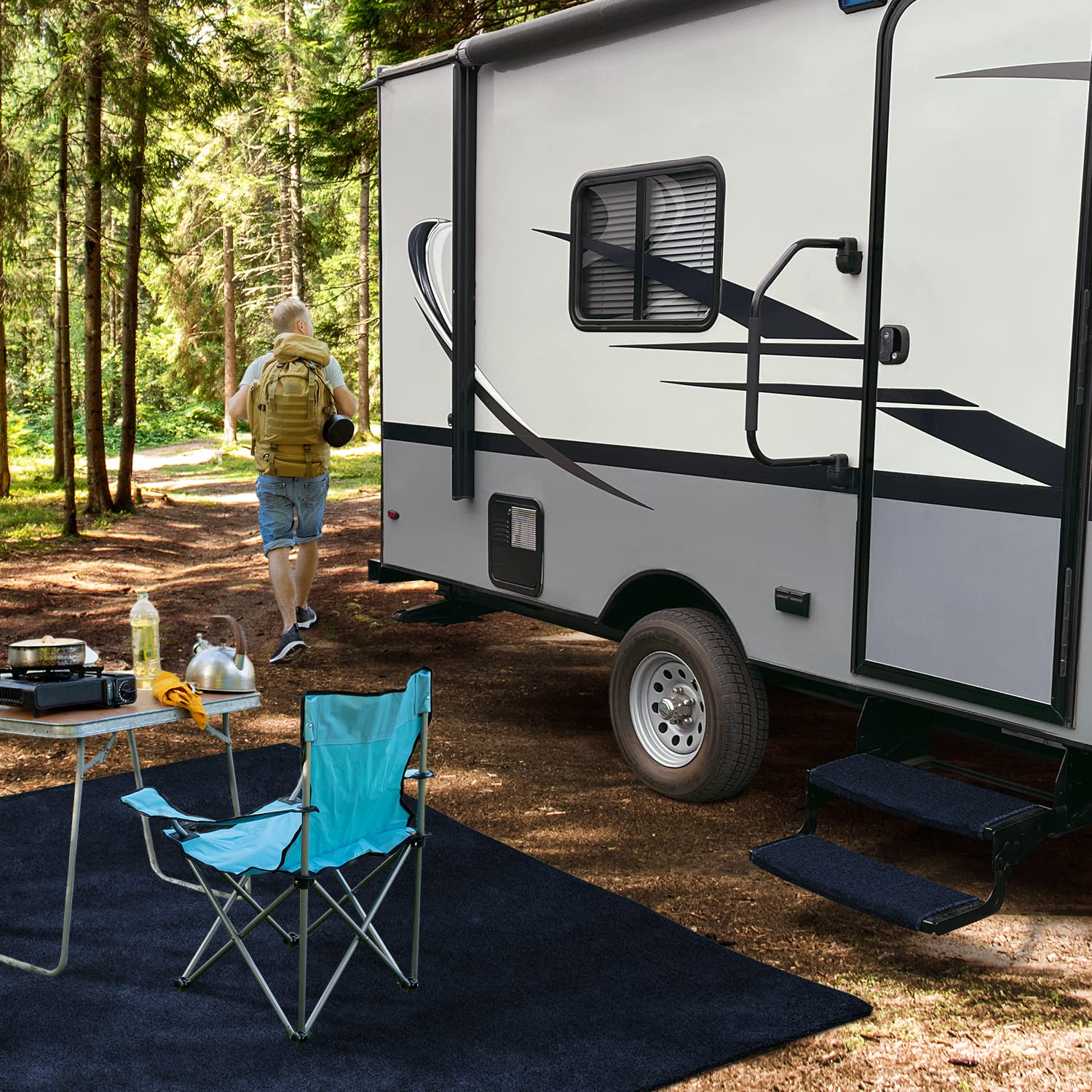 • Pack contains three (3) 22 inch wide step rugs that cover curved / radius RV & camper steps 8 to 10 inches deep