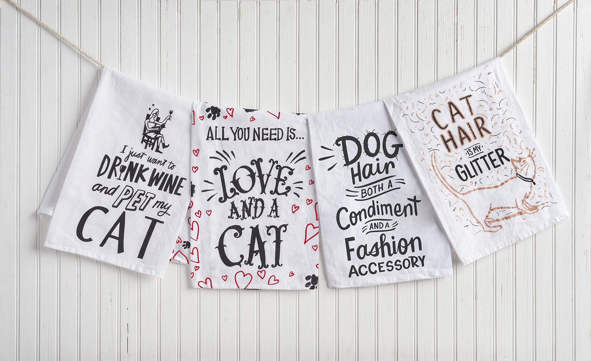 Primitives by Kathy 36922 LOL Made You Smile Dish Towel, 28 x 28-Inches, Drink Wine and Pet My Cat