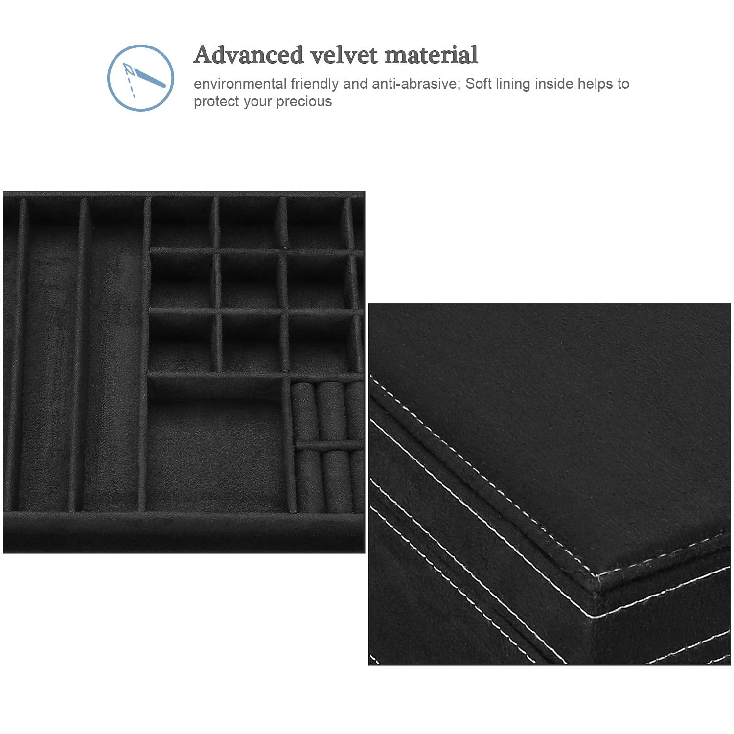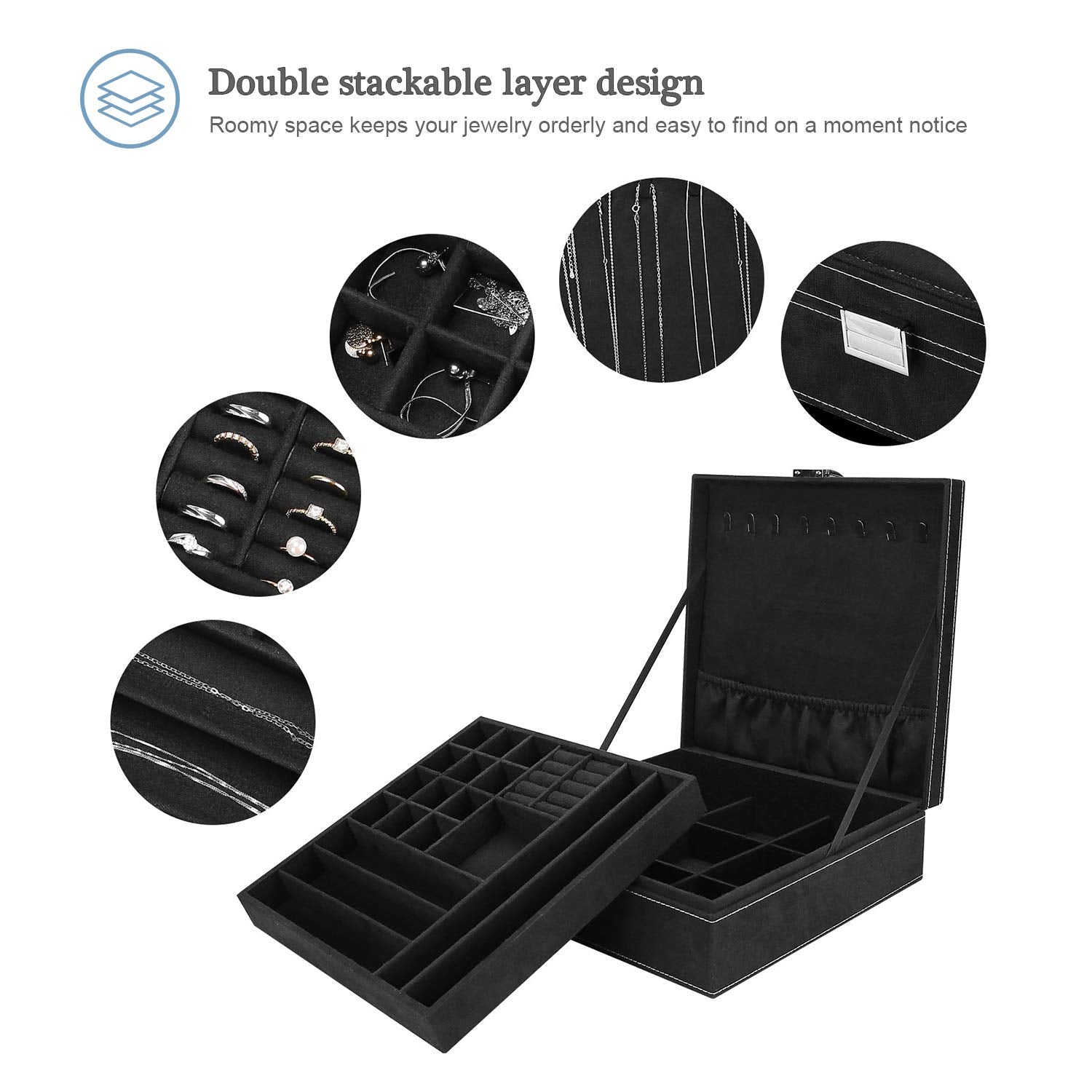 ProCase Velvet Jewelry Box Organizer for Women Father's Day, 2 Layer Jewelry Display Storage Holder Case for Necklace Earrings Bracelets Rings -Black