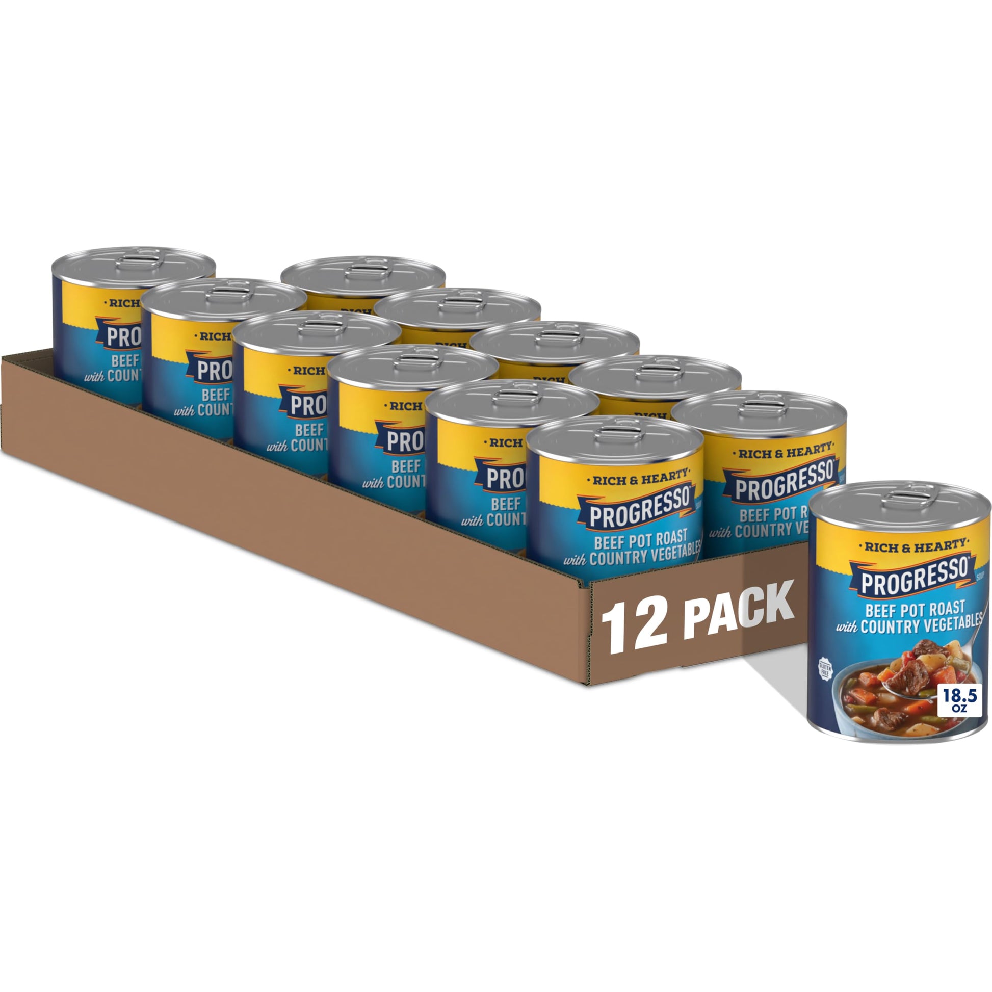 • CONTAINS: Twelve 18.5 oz pull-top cans of Progresso Beef Pot Roast with Country Vegetables canned soup