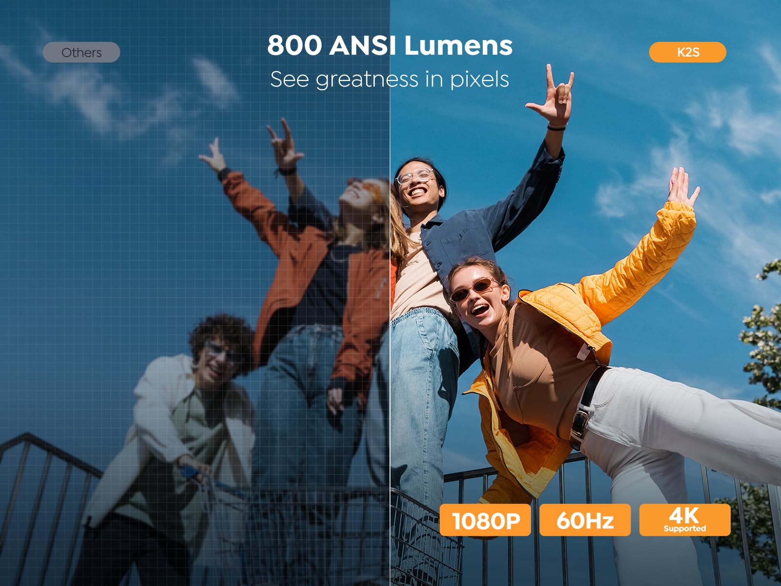 • ➤【 More than smart - Auto Screen Adaptation & NFC Screencast 】 K2s smart tv projector boasts an innovative NFC Screencast function,by simply tapping your NFC-enabled phone to the projector, you can effortlessly cast movies to your screen.And auto focus & keystone correction for perfect image alignment and sharp visuals, making it incredibly easy to share your content on the big screen.