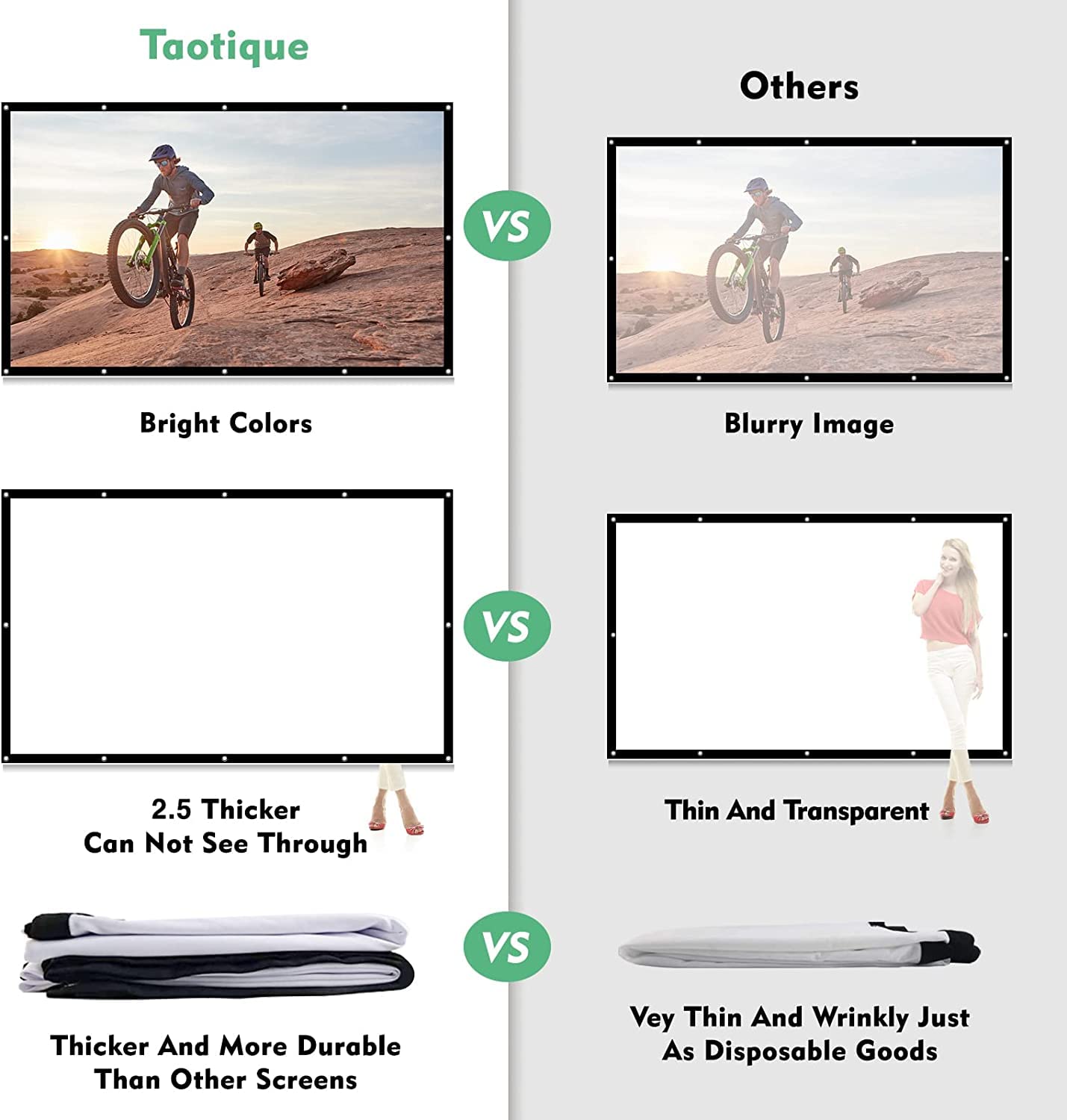 Projector Screen 100 inch, Taotique 4K Movie Projector Screen 16:9 HD Foldable and Portable Anti-Crease Indoor Outdoor Projection Double Sided Video Projector Screen for Home, Party, Office, Classroom