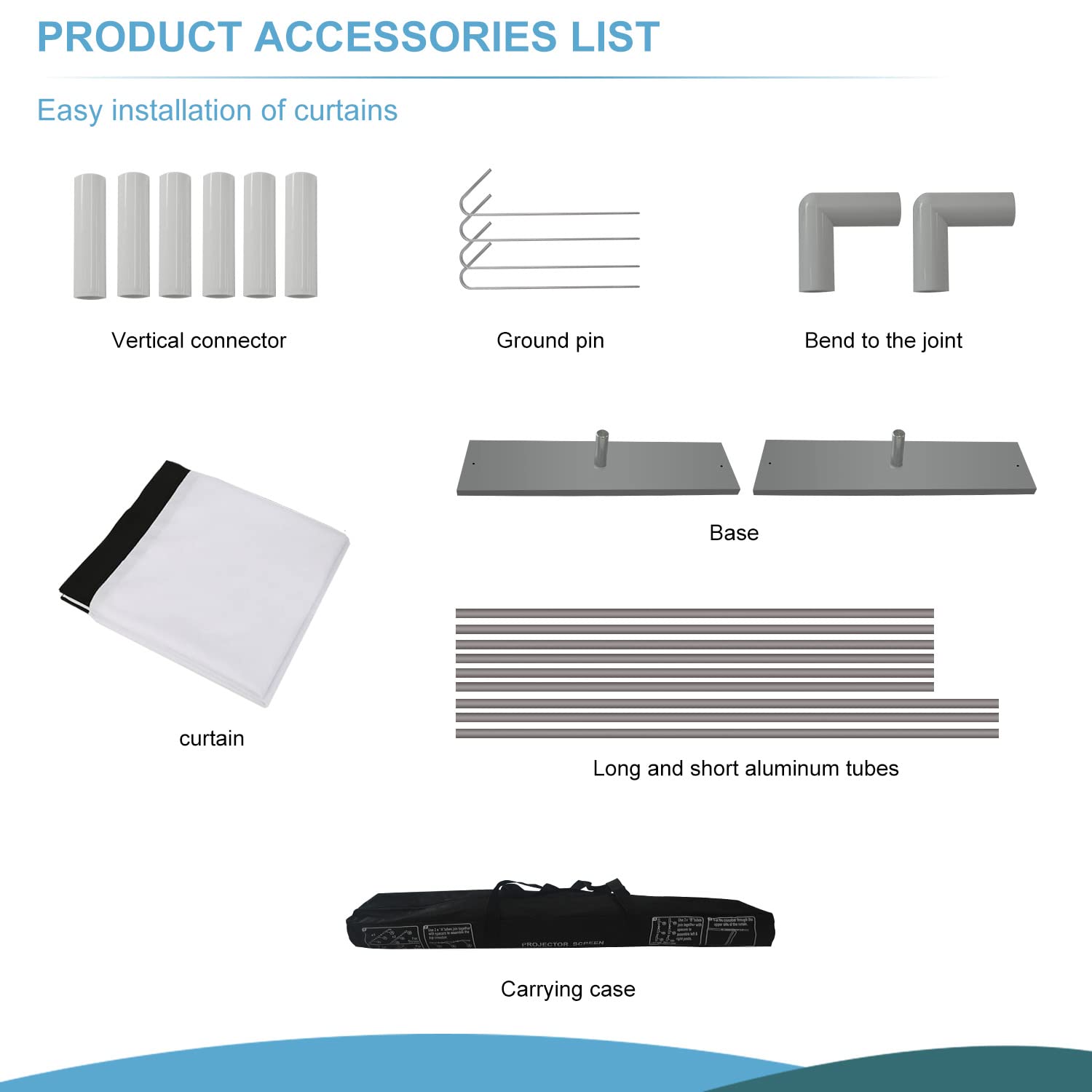 • 【Express Setup】 - The projector screen with stand is ready for quickly set-up in few minutes. Just follow the instructions by linking the short tube to quickly fasten the projector screen to the frame flatly;If there is a wind, you can fix the scaffold on the ground.We are pleased to announce the enhancement of our material, which has been updated to provide superior Sturdy and durability for an elevated experience