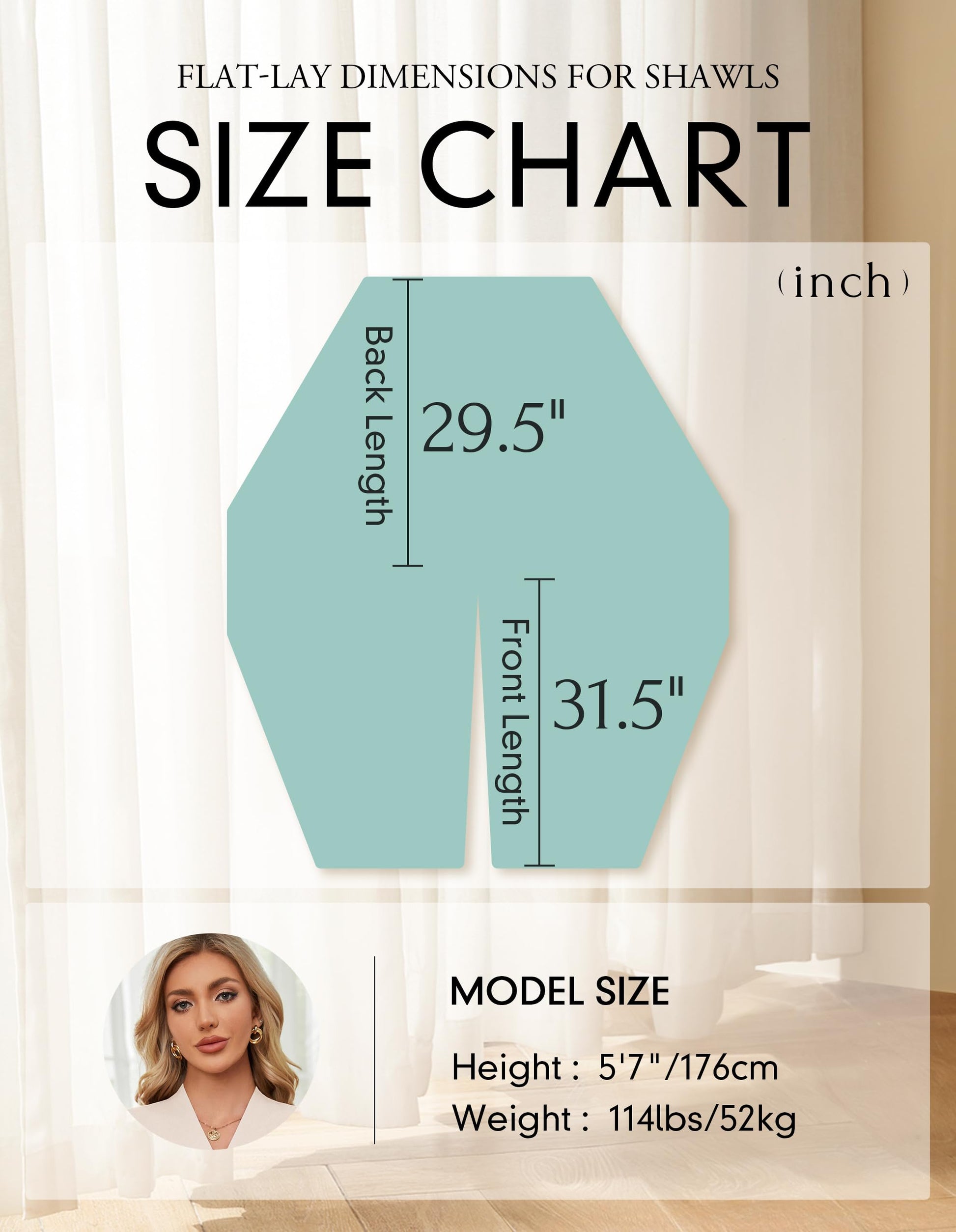 • VERSATILE DESIGN:Our poncho shawls has the tab for you to pull the other end of the wrap from.Or you shall take is as open front shawls wrap.