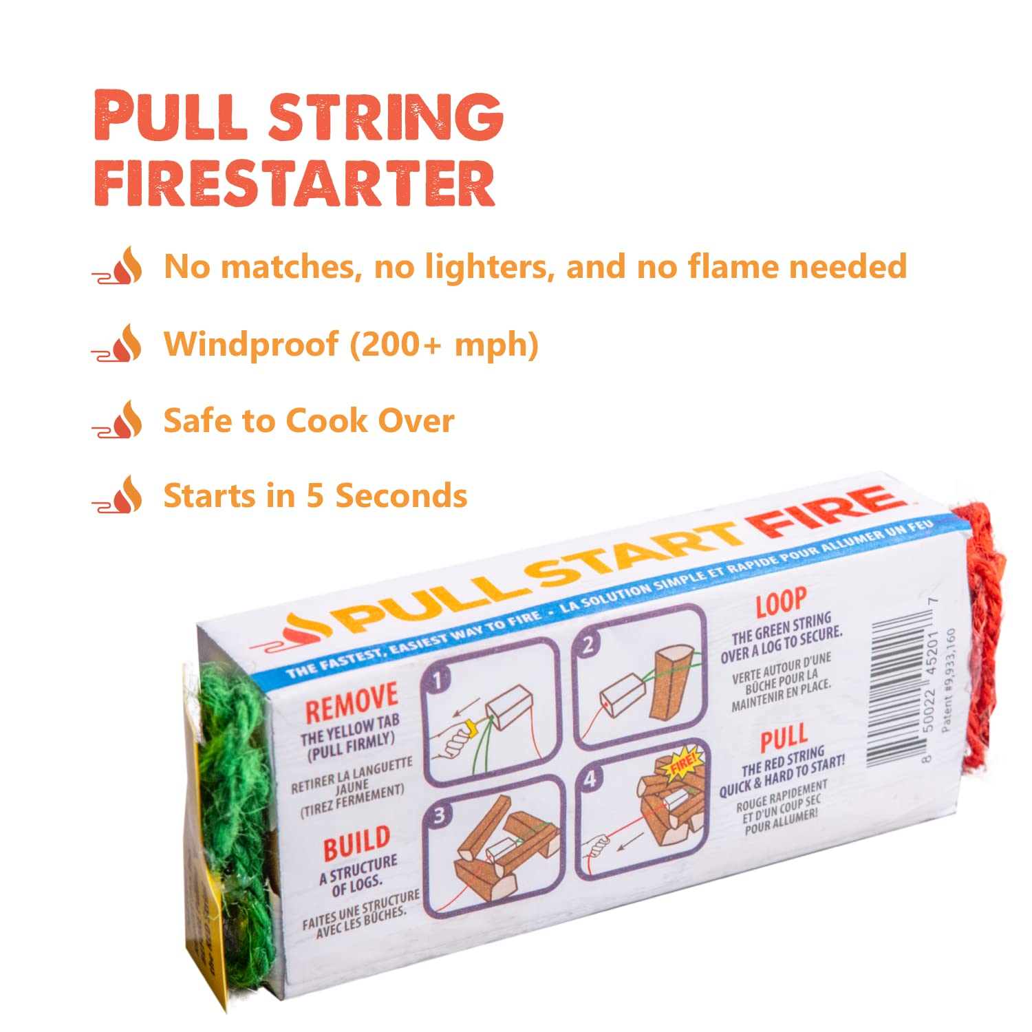 • QUICK & EASY FIRE STARTER: No matches, no lighters, and no flame needed. Just pull the string and watch your fire roar to life in seconds! You'll love our instant 5-second fire starter. Great for outdoor campfires, easy fire starters for fireplace and fire pits, and perfect for all weather.