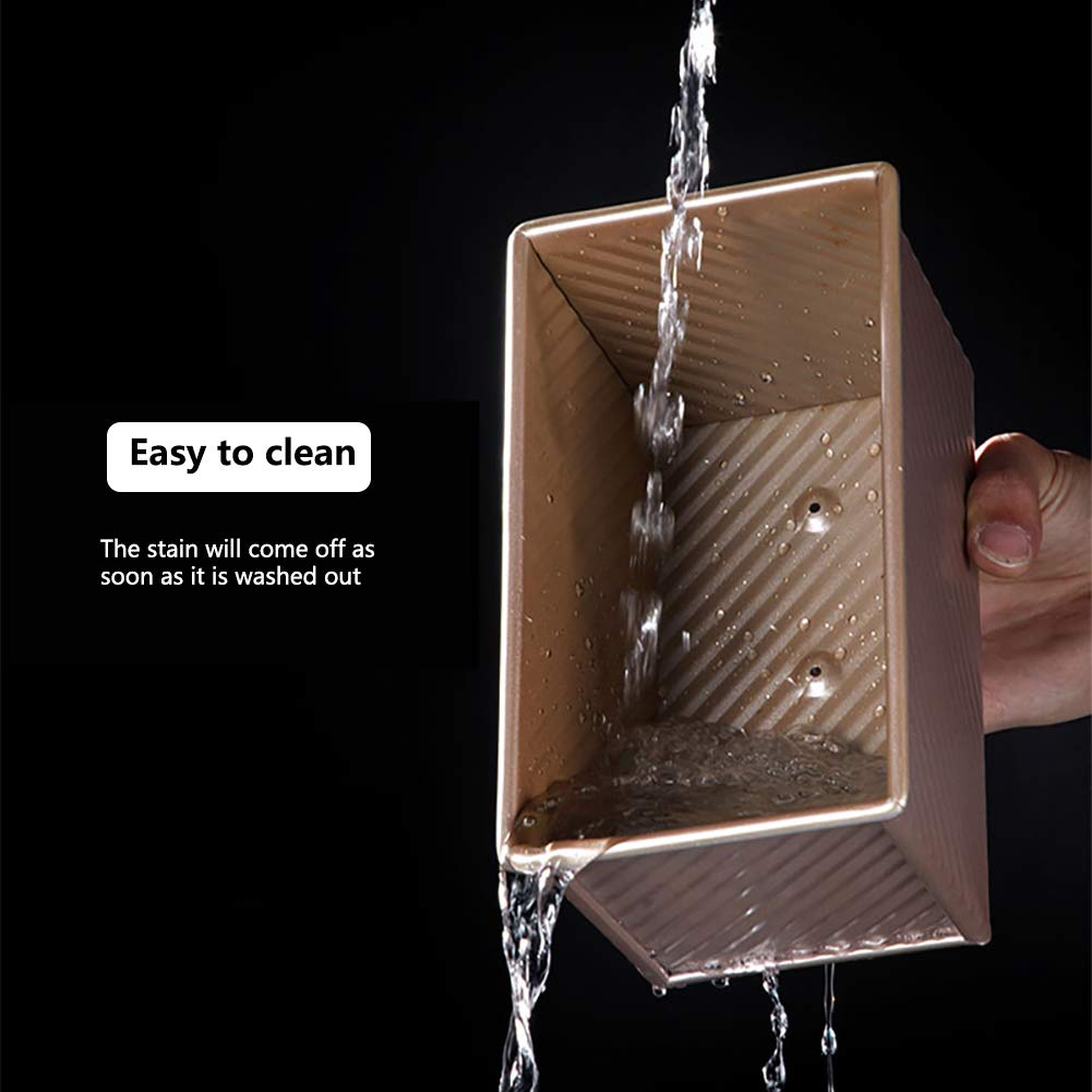 • This Loaf Pan Toast Mould is treated with a special non stick coating, which does not absorb grease and water and is easy to clean. This Loaf Pan Toast bread pan is suitable for household ovens and should not be used in commercial ovens as much as possible!!