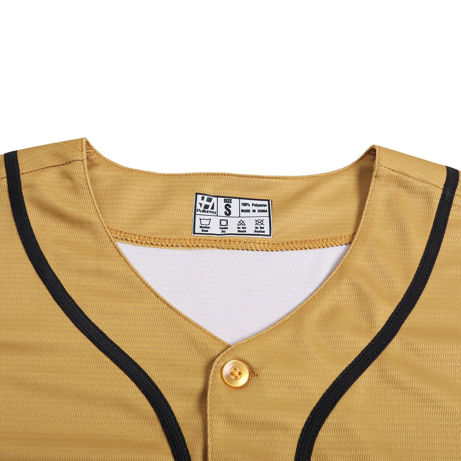 Pullonsy Men's Baseball Jersey for Women Father Mother Sports Uniform Workout Gym Fitness Outfits Fashion Custom Tops,Black Stripe Old Gold Jersey,Size 3XL