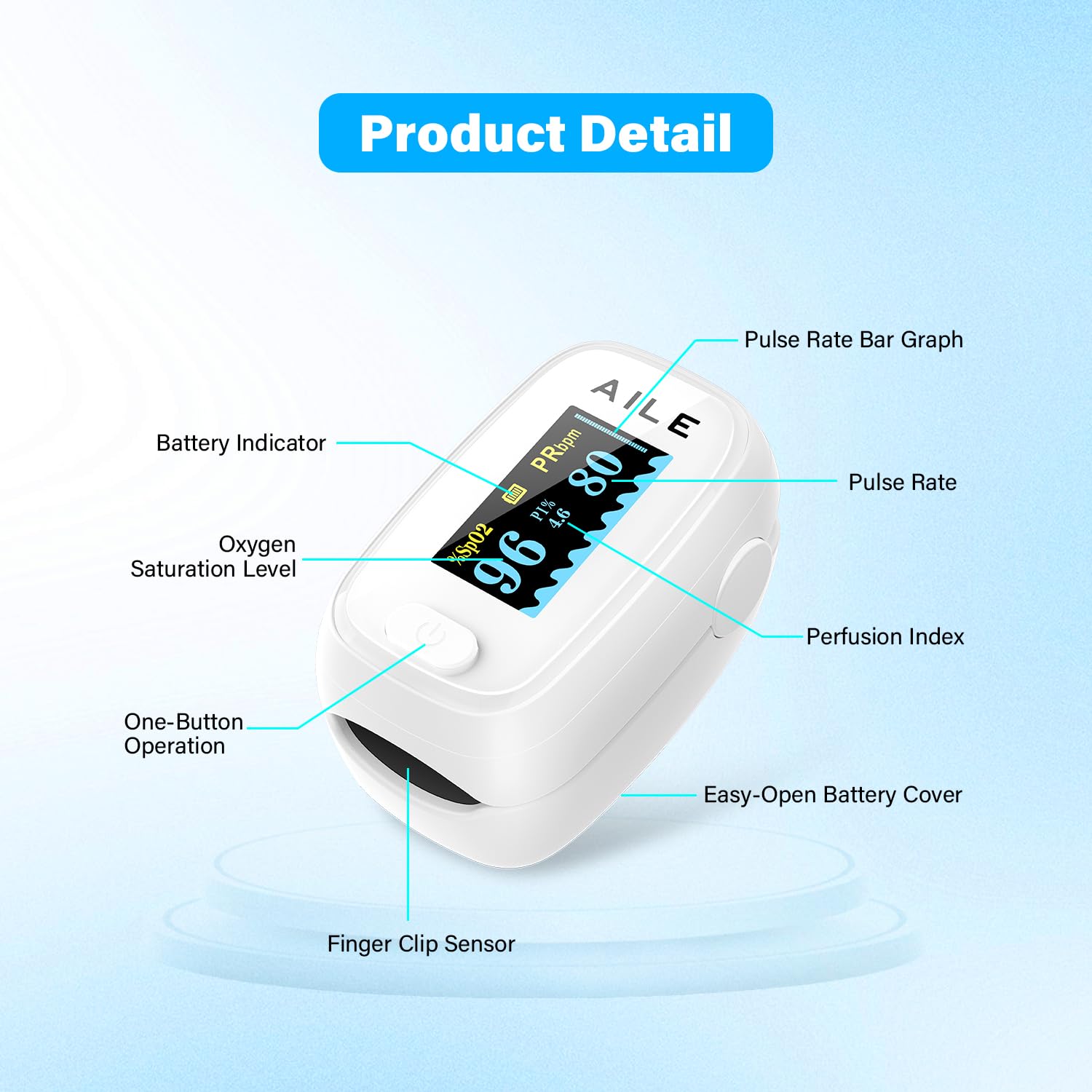 • [Accurate and reliable] AILE pulse oximeter utilizes advanced technology to provide accurate and reliable readings of your oxygen saturation levels and pulse rate. Perfect for monitoring your index at home or on-the-go