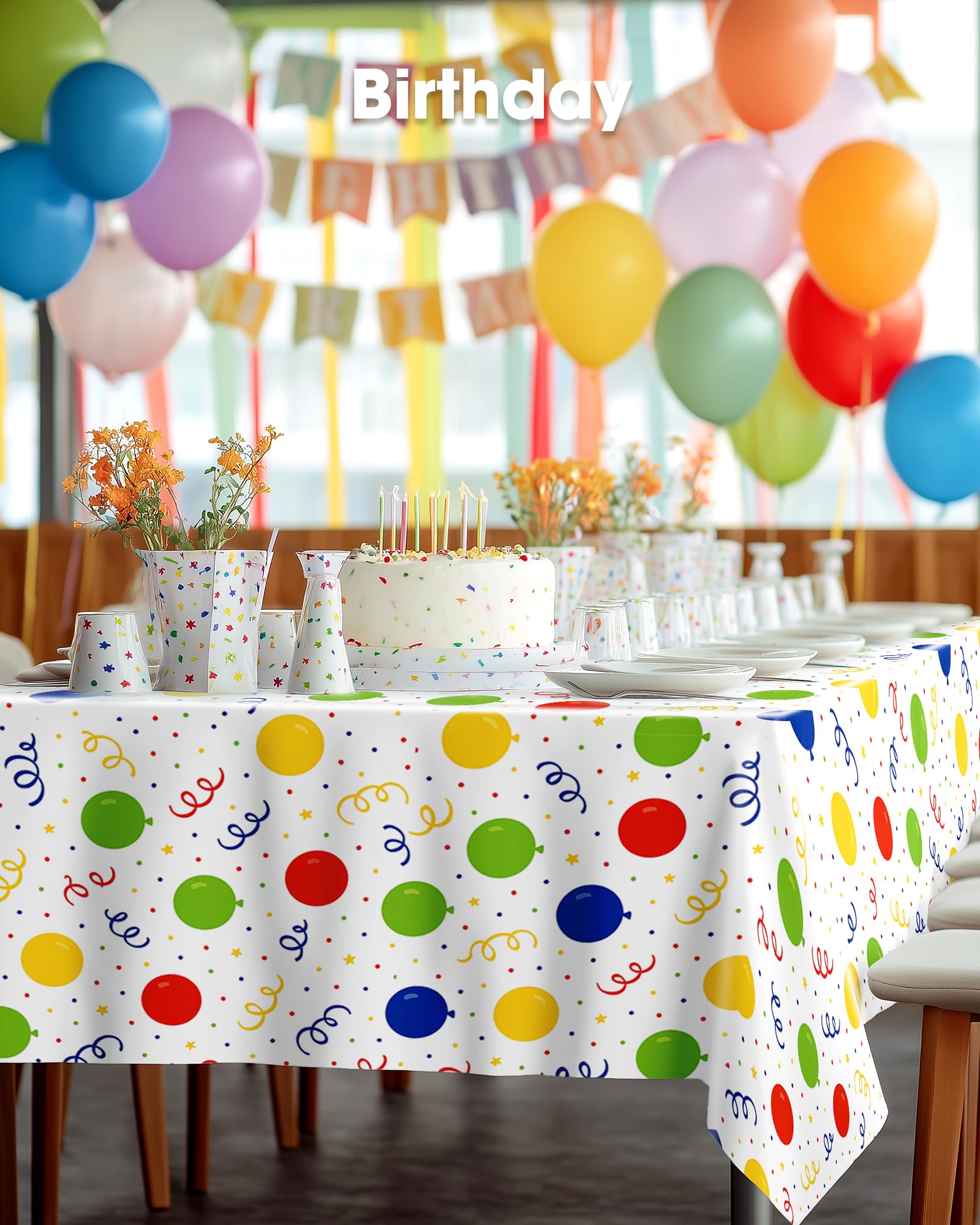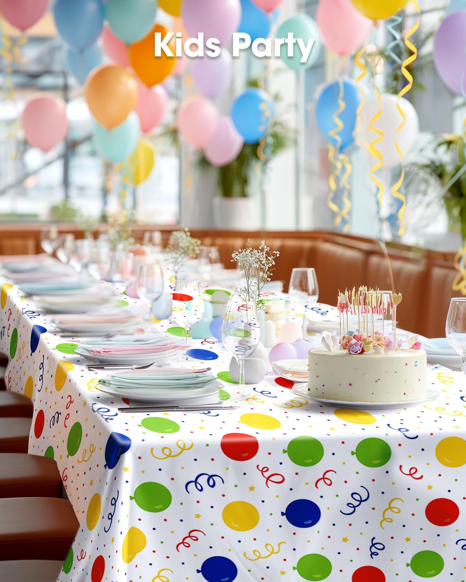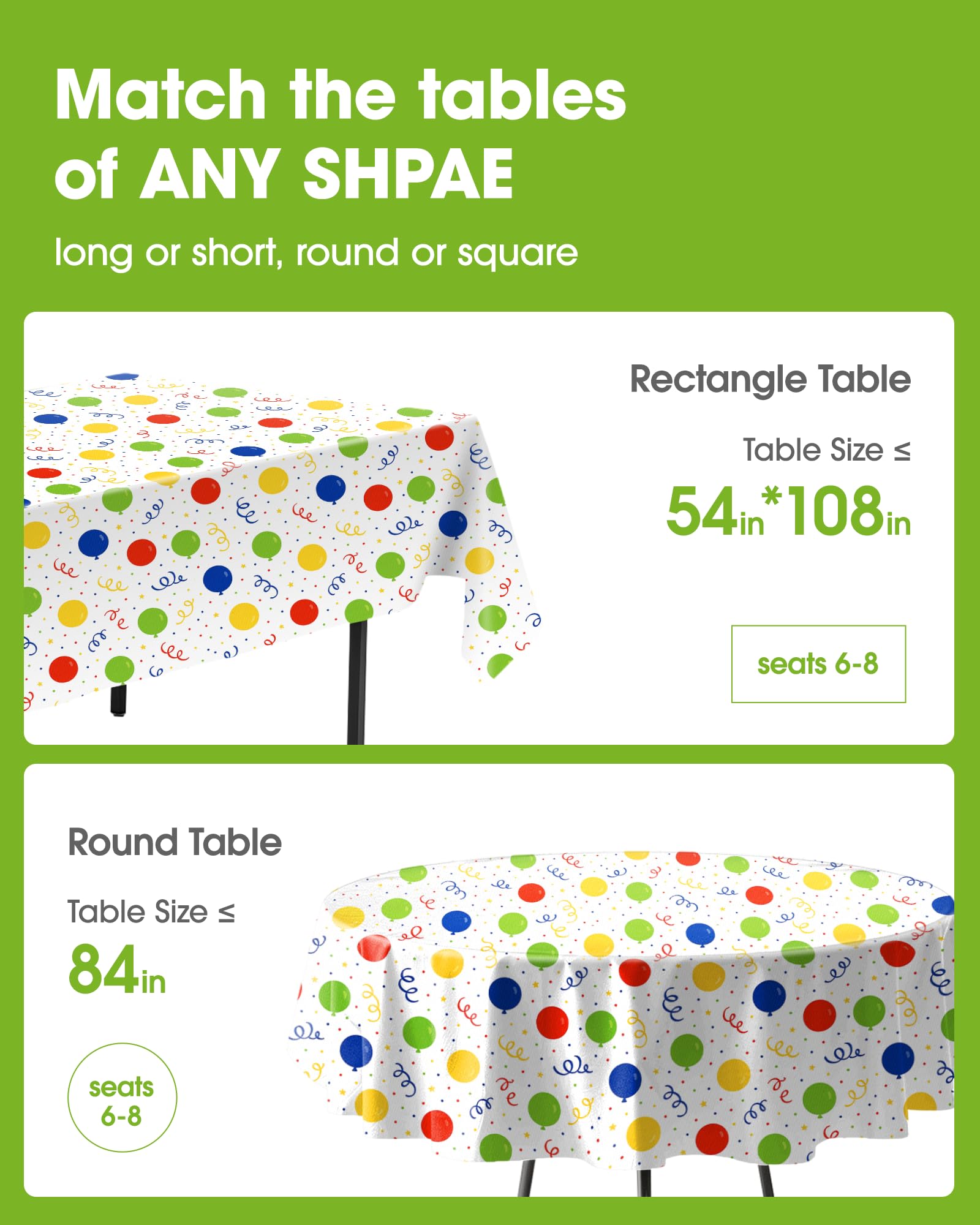 Pureegg Plastic Table Cloth Disposable 10 Pack, 54 x 108 Inch Table Cloths, Birthday Party Decorations, Picnic, White Tablecloths, Rectangle, Colorful, Rainbow Cover, Leakproof & Sturdy, Balloon