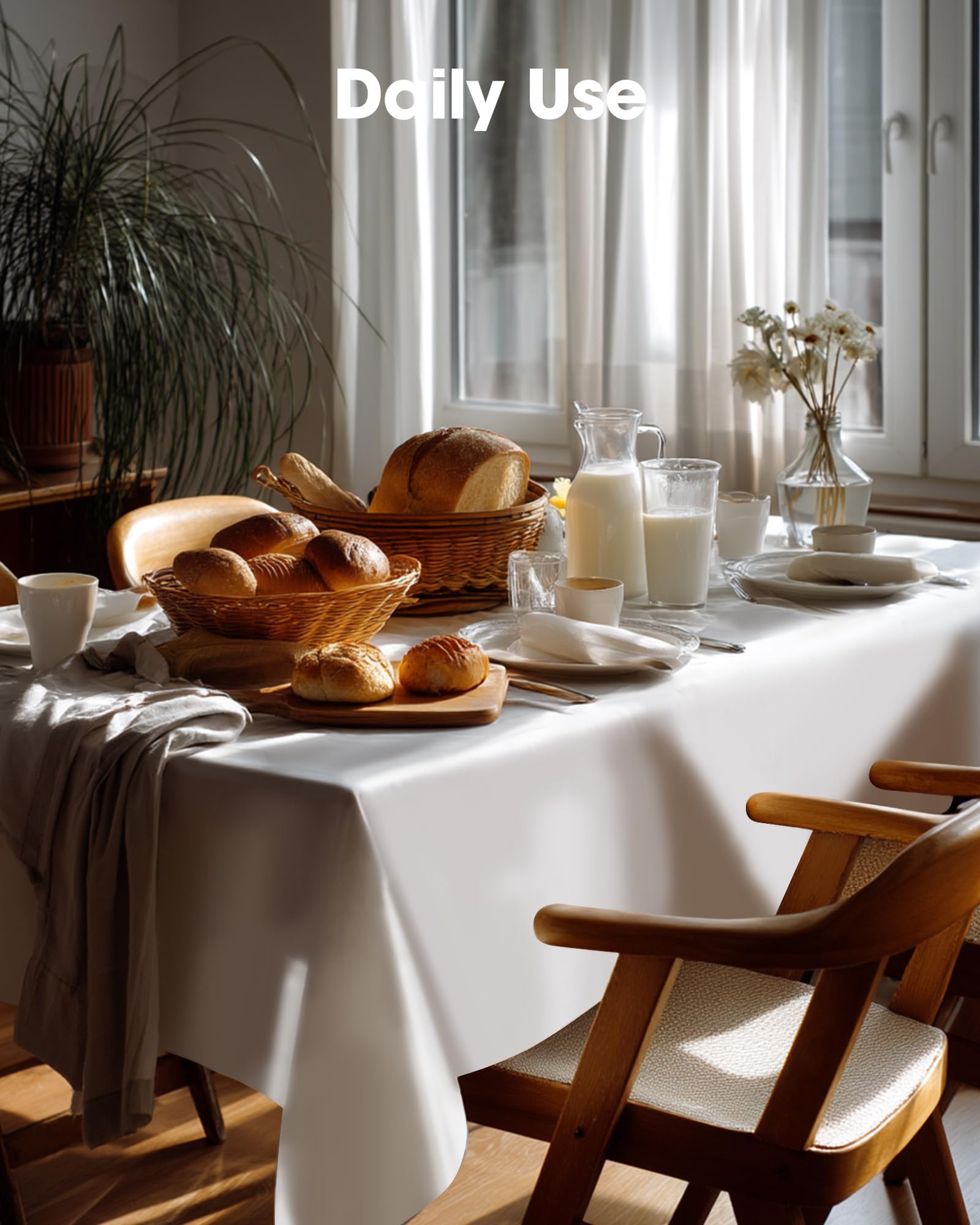 • FIT ANY SHAPE OF TABLES: Pureegg disposable tablecloths for rectangle tables measure 54" x 108" and fit tables up to 8 feet long. These plastic table cloths also fit smaller tables or various kinds of tables, like folding buffets, outdoor picnic, kitchen, and dining tables.
