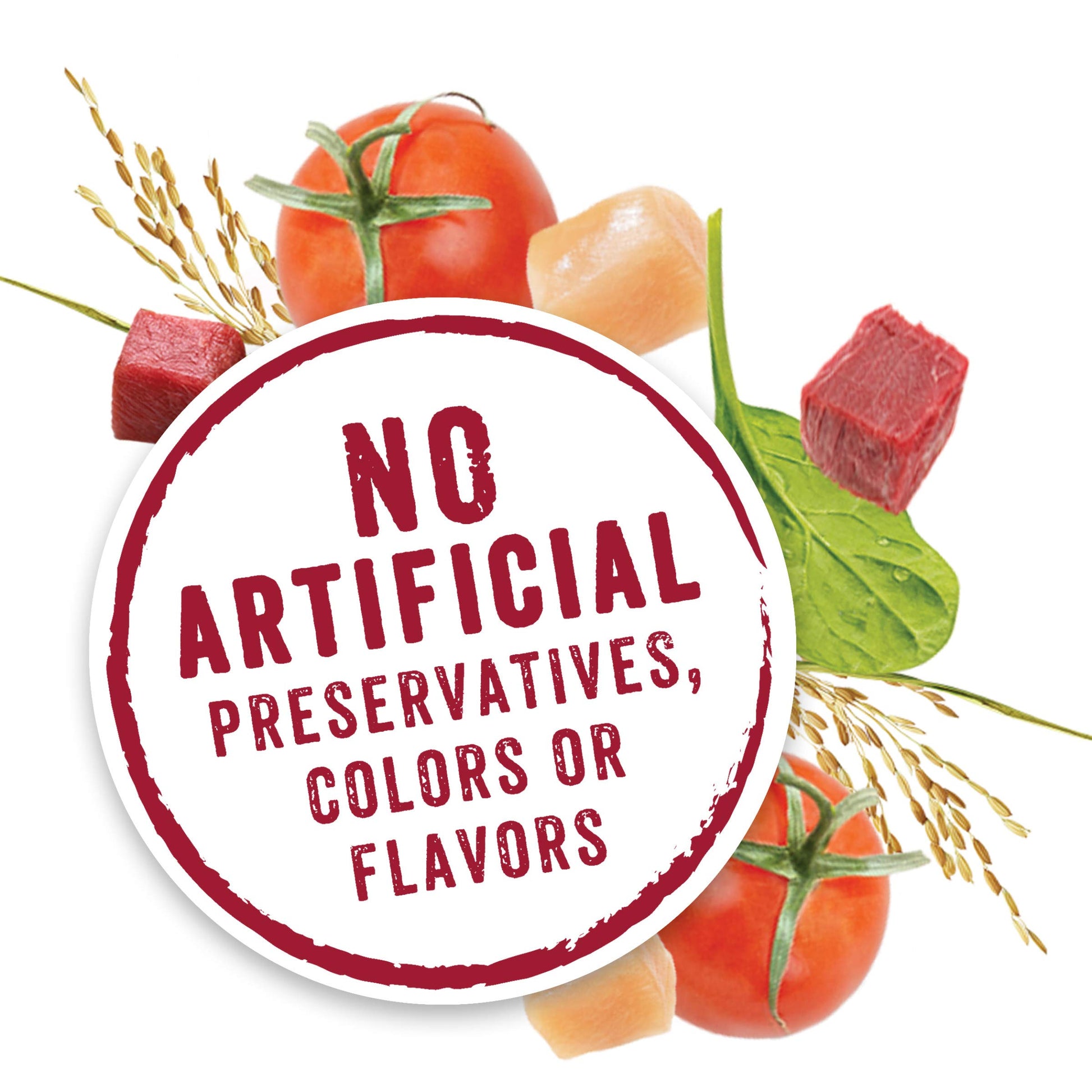 • 100 percent complete and balanced nutrition for adult dogs. No artificial colors, flavors or preservatives