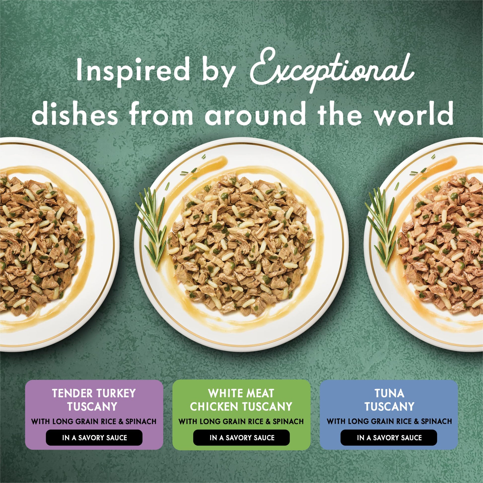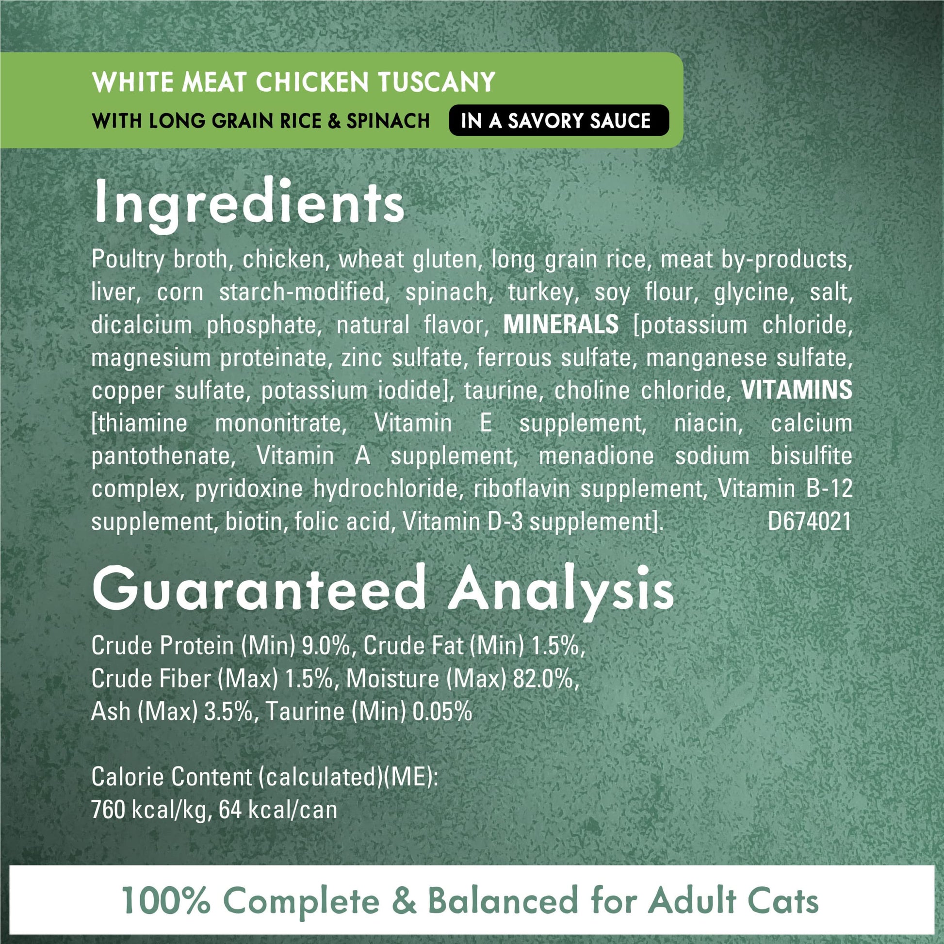 Details: Bring a variety of inspired tastes to your cat's dish with the Purina Fancy Feast Medleys Tuscany Collection wet cat food variety pack. All of the delectable Tuscan recipes give your cat lots of delicious choices at mealtime, and the high-quality ingredients in each can let you feel good about the foods you serve to your faithful feline. Let her explore the succulent turkey, savory white meat chicken and delicate tuna flavors to get all the inspired by classic Italian Florentine recipes she loves, and rest easy knowing she's getting essential vitamins and minerals to help support her overall health and wellness no matter which can you reach for at feeding time. She's sure to make a run for her dish when she hears you open a can from this variety pack, and the accents of long grain rice and garden greens offer a visual cue that delicious goodness is waiting for her as you pour this gourmet wet cat food in her bowl.