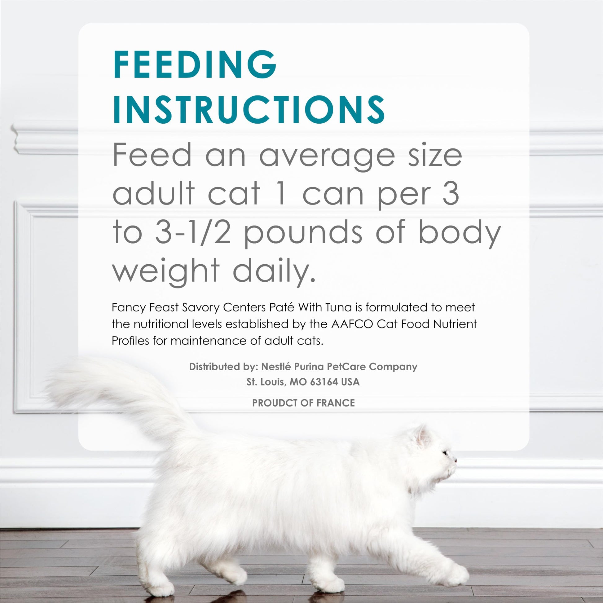 Details: Thrill your feline connoisseur with the innovative dual-texture recipes found in Purina Fancy Feast Savory Centers Adult Wet Cat Food Pate With Tuna and a Gravy Center. Made by Fancy Feast, the number 1 cat food brand (based on sales as of April 2025), this cat pate offers her the delicate, smooth texture she loves without sacrificing the thick, savory gravy she craves. The hidden gourmet cat wet food gravy center in each canned cat food recipe is like a buried treasure just waiting for her delighted discovery. Made with real, high-quality ingredients, this delicious Fancy Feast Savory Centers Pate Wet Cat Food provides 100 percent complete and balanced adult cat food nutrition. She gets the great flavor she expects from Fancy Feast and you get peace of mind knowing her meals contain essential vitamins and minerals that support her overall health. Open this canned cat food pate when your fish-loving feline is in the mood for tuna. Be sure to check out Fancy Feast Savory Centers With Chicken Pate, With Salmon Pate or With Beef Pate selections for exciting mealtime variety.