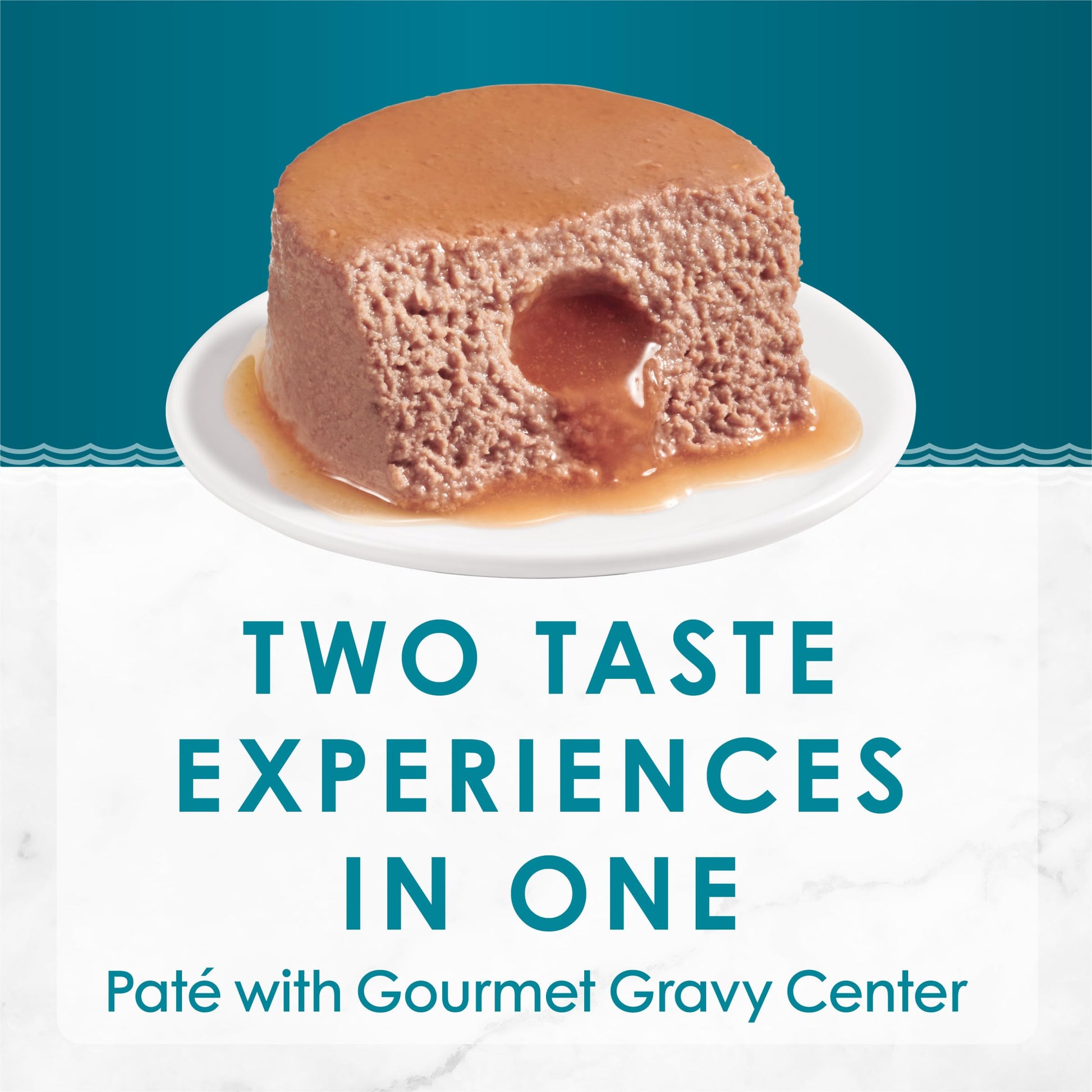 COMPLETE AND BALANCED: Made with tuna cat food with a gravy center makes mealtime exciting while delivering 100 percent complete and balanced adult nutrition.