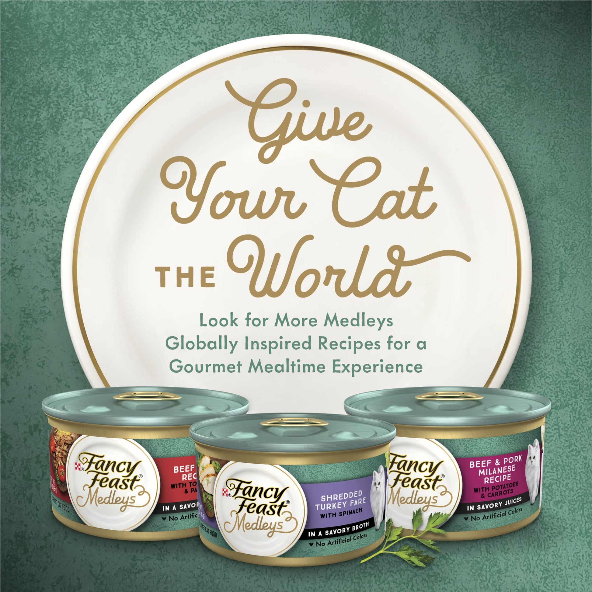 • Delicious Fancy Feast canned cat food combinations inspired by dishes from around the world