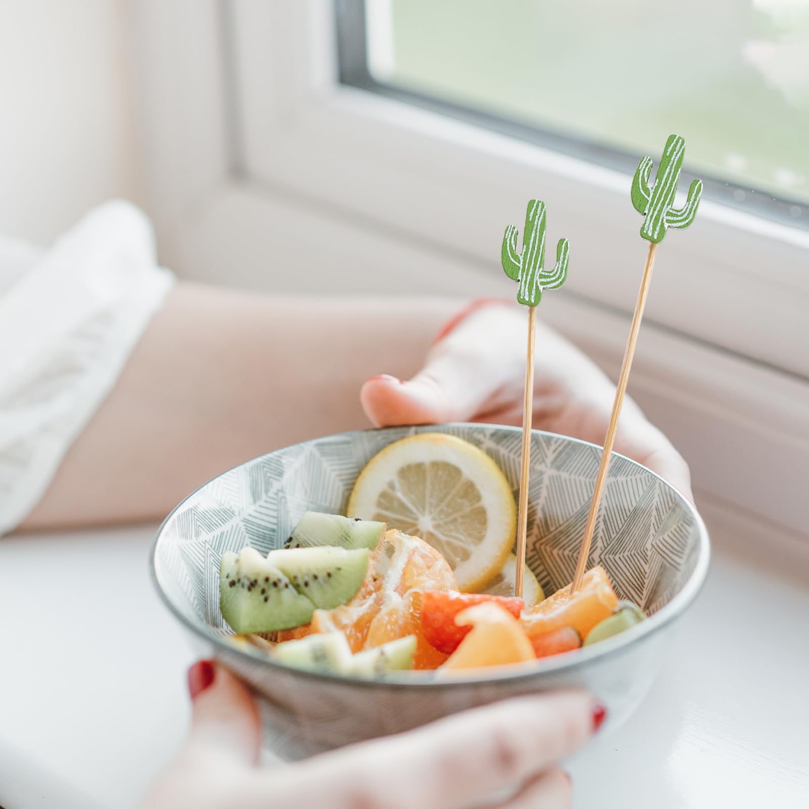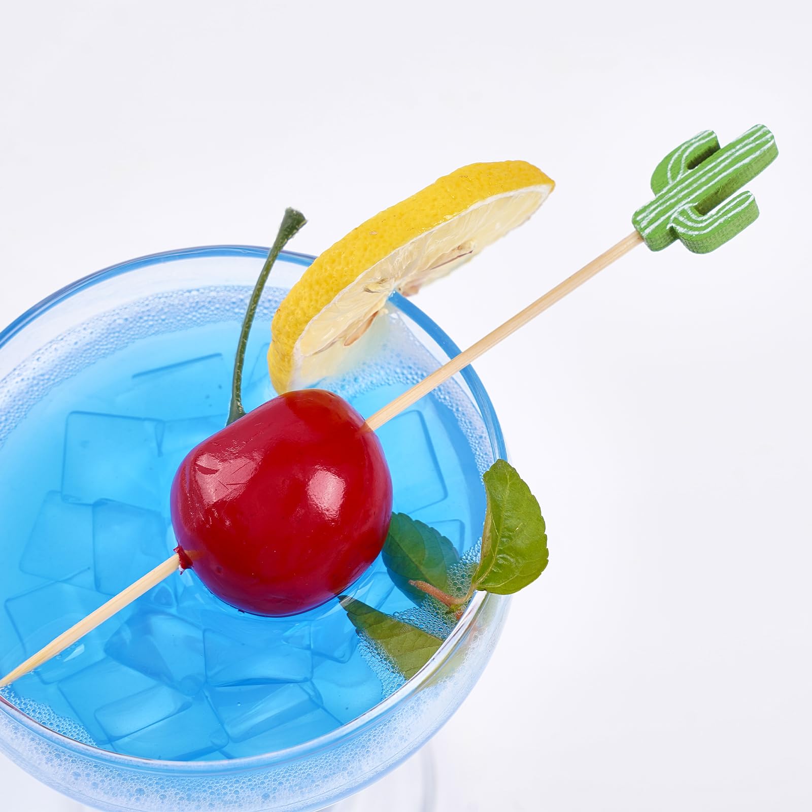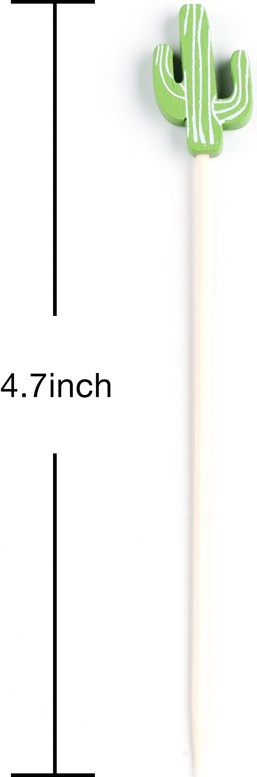 PuTwo Cocktail Picks Handmade Bamboo Toothpicks 100pcs 4.7” in Green Cacti