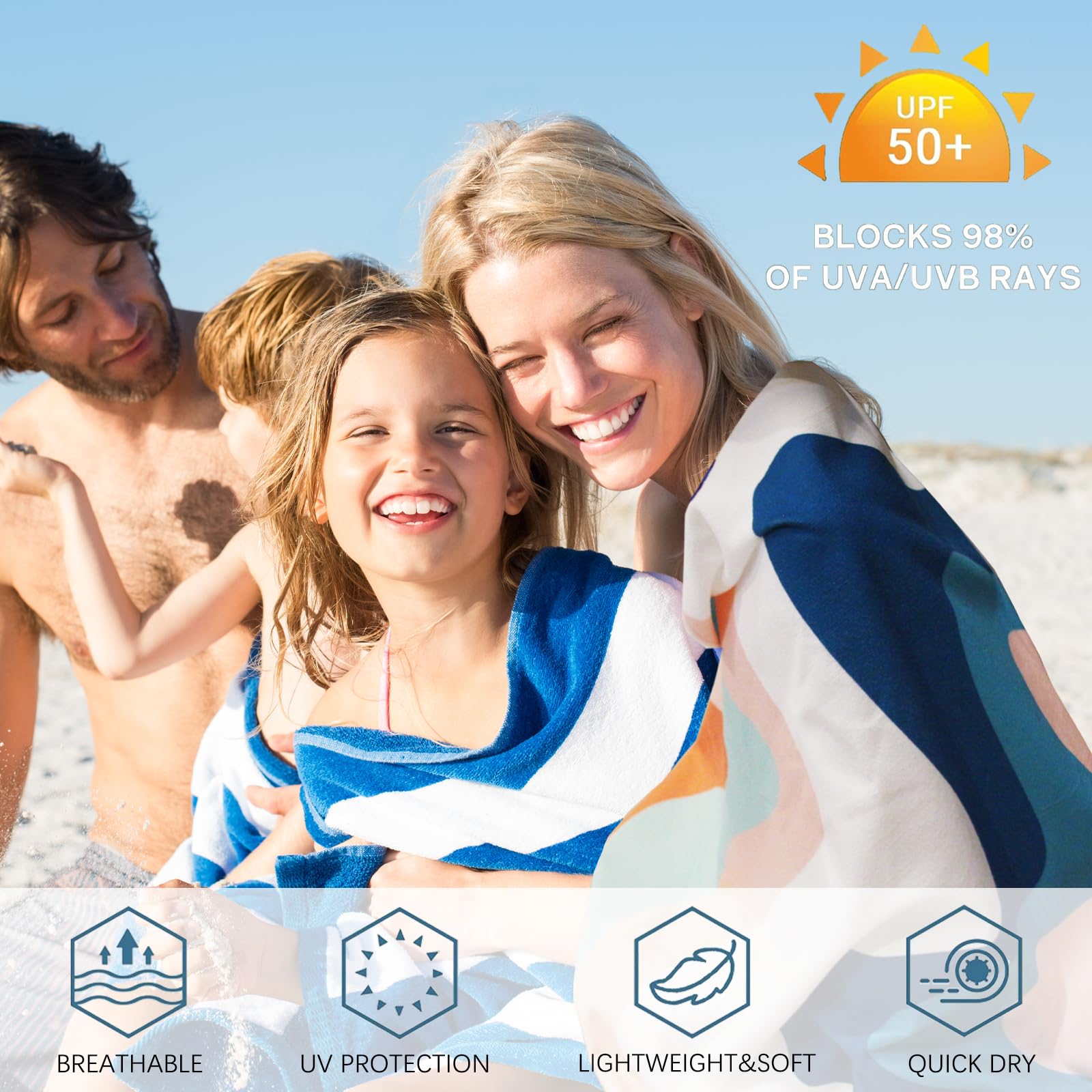 • All-day multi-use companion: Quick-dry bath wrap to sun shield, picnic blanket, or emergency rain cover - 4 uses in 1 smart design