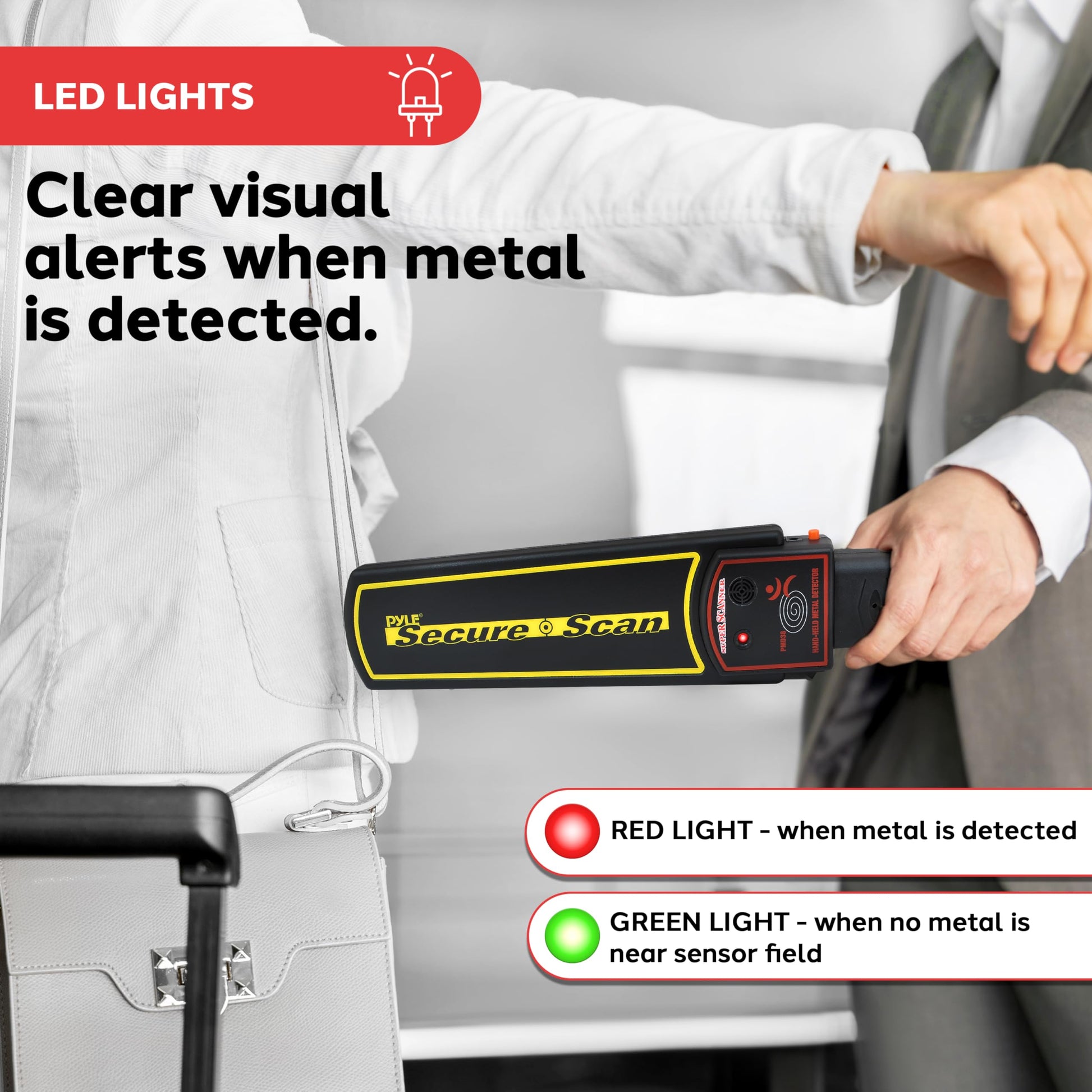 Pyle Handheld Metal Detector Security Wand - Portable Battery Operated Super Security Scanner w/ Adjustable Sensitivity, Sound Vibration Alerts, Detects Weapons, Knives and Other Metal Objects