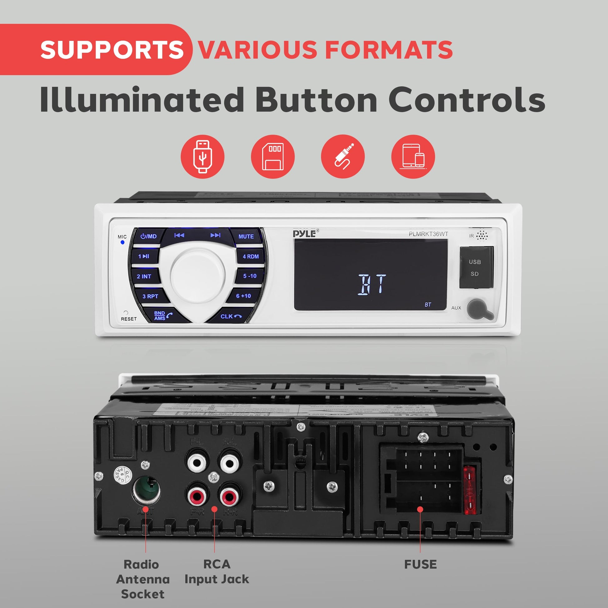 Pyle Marine Receiver & Speaker Kit - In-Dash LCD Digital Stereo Built-in Bluetooth & Microphone w/ AM FM Radio System 5.25’’ Waterproof Speakers (2) MP3/USB/SD Readers & Remote Control - PLMRKT36WT