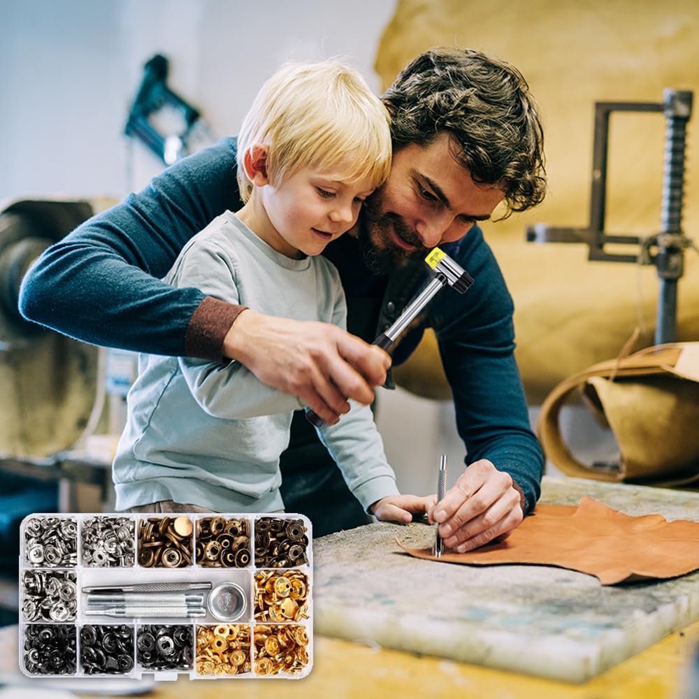 • MULTIPURPOSE: Package includes totally 120 sets of snap fasteners with 5 pieces of setting tools. This sewing snaps widely used in leather crafts, handbags, clothing, belts, jackets, jeans, backpacks, female bags, shoes, other sewing projects, DIY