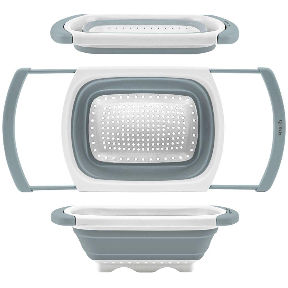 Qimh Collapsible Colander | Over The Sink Silicone Kitchen Strainers and Colanders with Extendable Handles | Veggies, Fruit and Pasta Foldable Strainer for Kitchen, 6-Quart, BPA Free