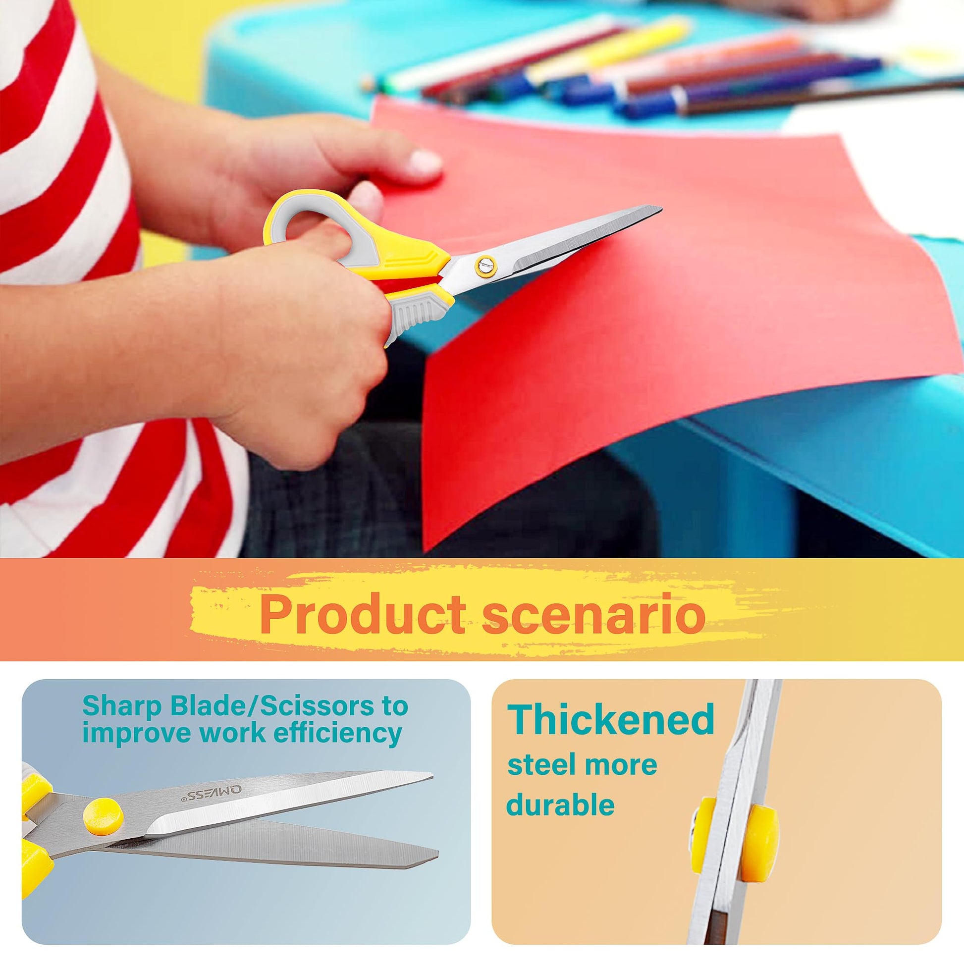 • 3 Pairs of 8.5 Inch Brightly Colored Scissors: yellow, green, purple, different colors for different places. Suitable for most items that need to be cut, cuts smoothly, efficiently and durably. Measures approximately 8.5 x 3.4 x 0.46 inches, keep out of reach of children