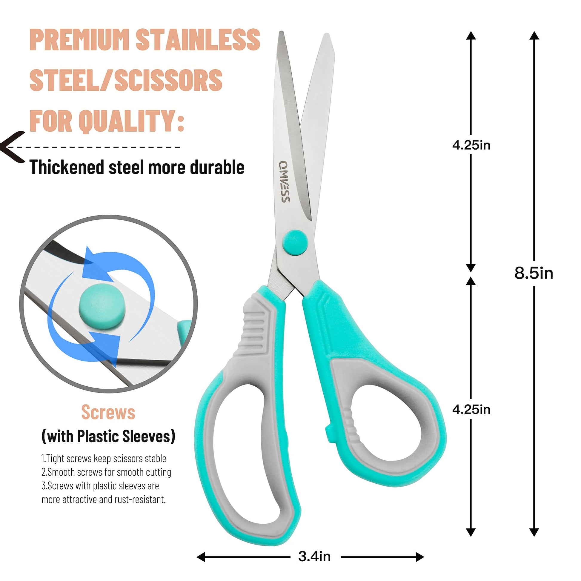 QMVESS 8.5" Scissors All Purpose 3 Pack, Ultra Sharp 2.5mm Thick Blade Scissors for Office, Professional Ergonomic Comfort Grip for Office School Home Fabric Sewing DIY Craft Cutting General Use