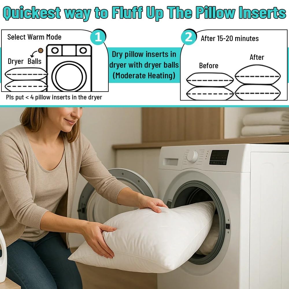 • Machine washable: These throw pillow inserts are easy to clean and maintain, and can be machine washed and tumble dried for your convenience.