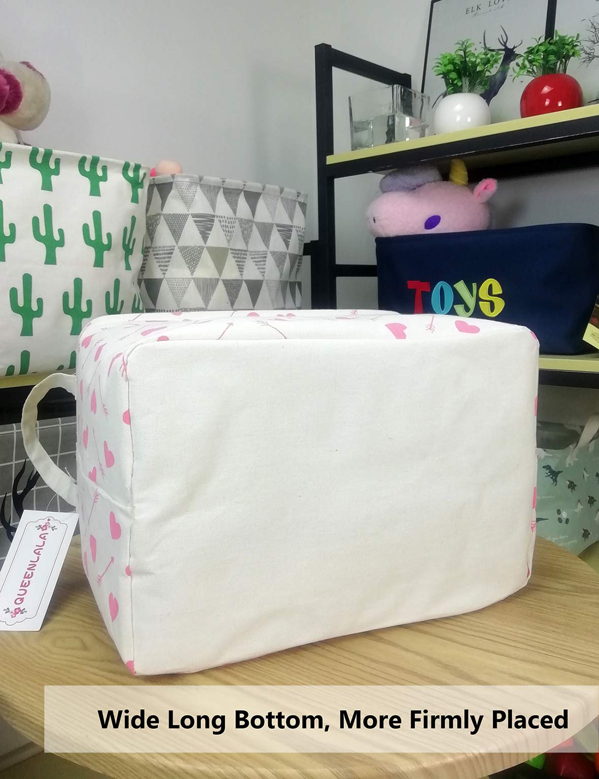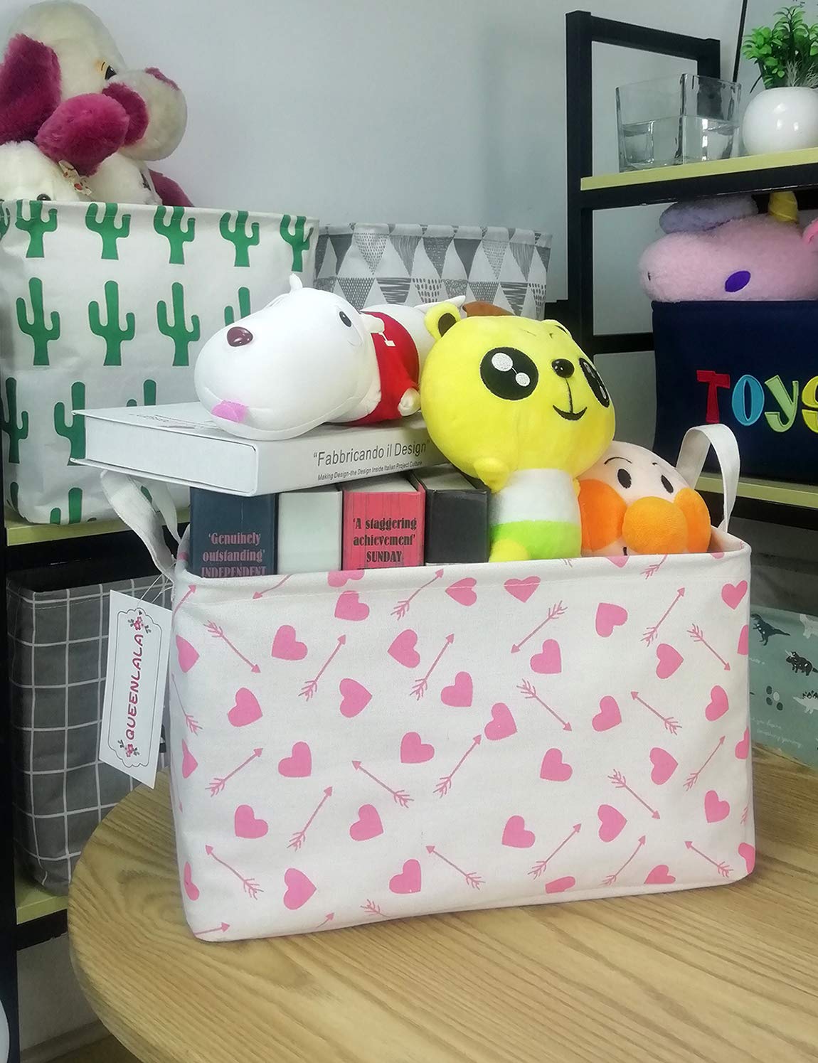 QUEENLALA Rectangular Laundry Hamper/Foldable Nursery Laundry Basket for Organizing/Storage Bin Baskets/Children Toy Office Bedroom/Toy Bin Closet Shelf Baskets(Rec-Pink-Heart Arrow)