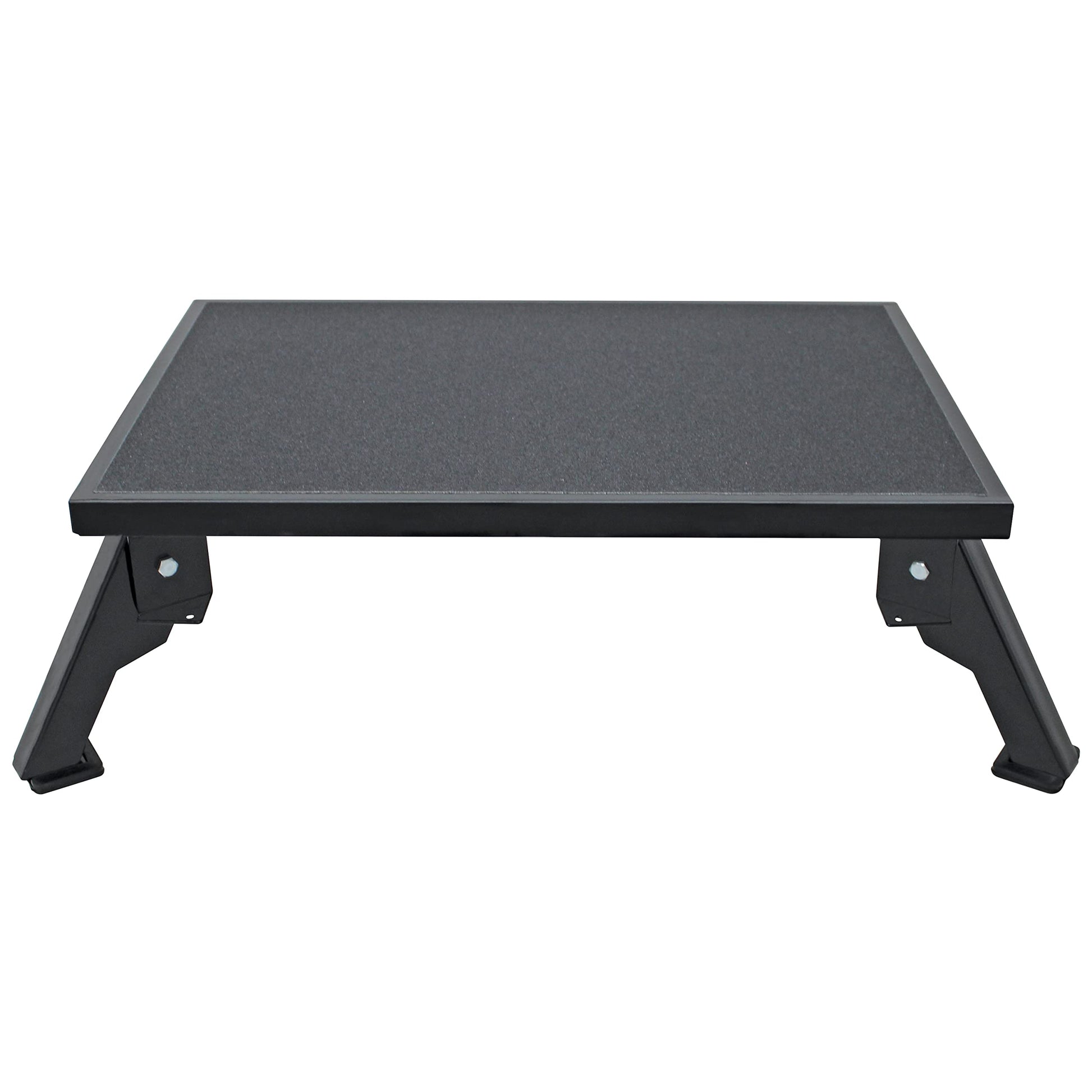 Details: Step up in comfort with the Quick Step Platform Step. This stable platform step features solid, powder coated steel construction. Its extra-large platform is perfect for RVs, offering a 7.5" or 3.5" lift. 300 lb. capacity. Locking safety legs offer a stable, secure step. Full gripper surface for traction and safety even in wet or muddy conditions. 14.4 lbs.