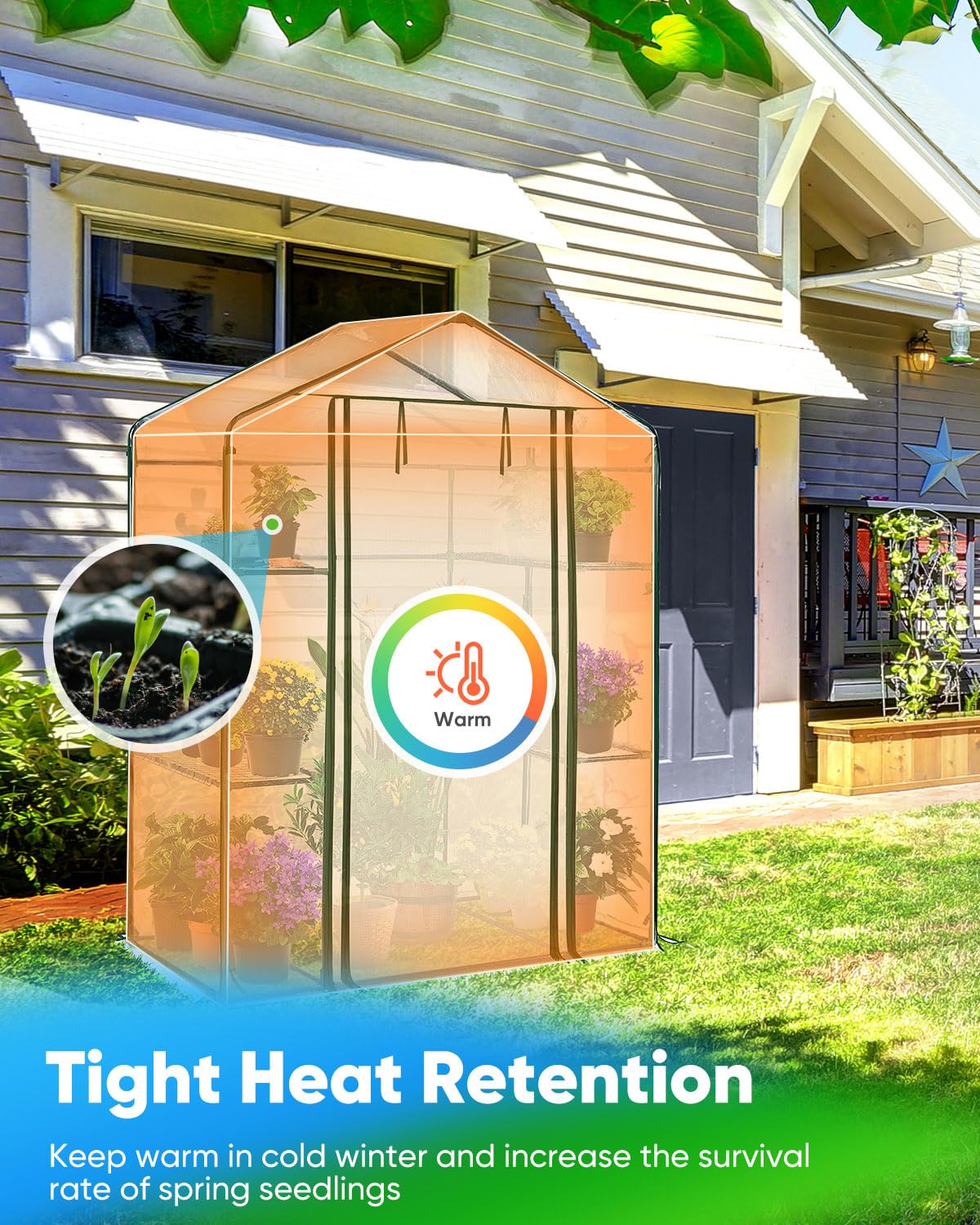 • Transparent PVC Cover: 100% Waterproof, UV protection, maximum Solar Performance, keep the greenhouse inside warmer and help to extend plant growing seasons. Also mini size greenhouse, easy to move outside or inside in winter. Easy and portable to set up or move.