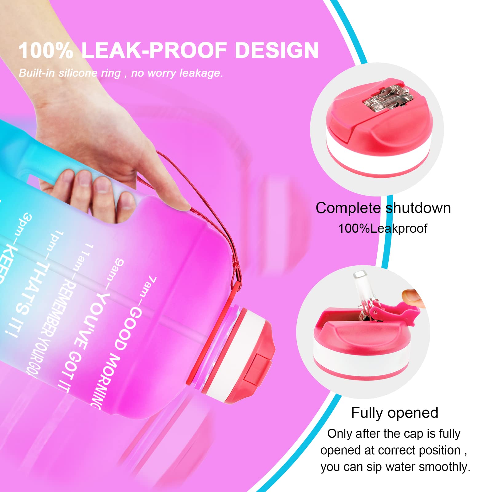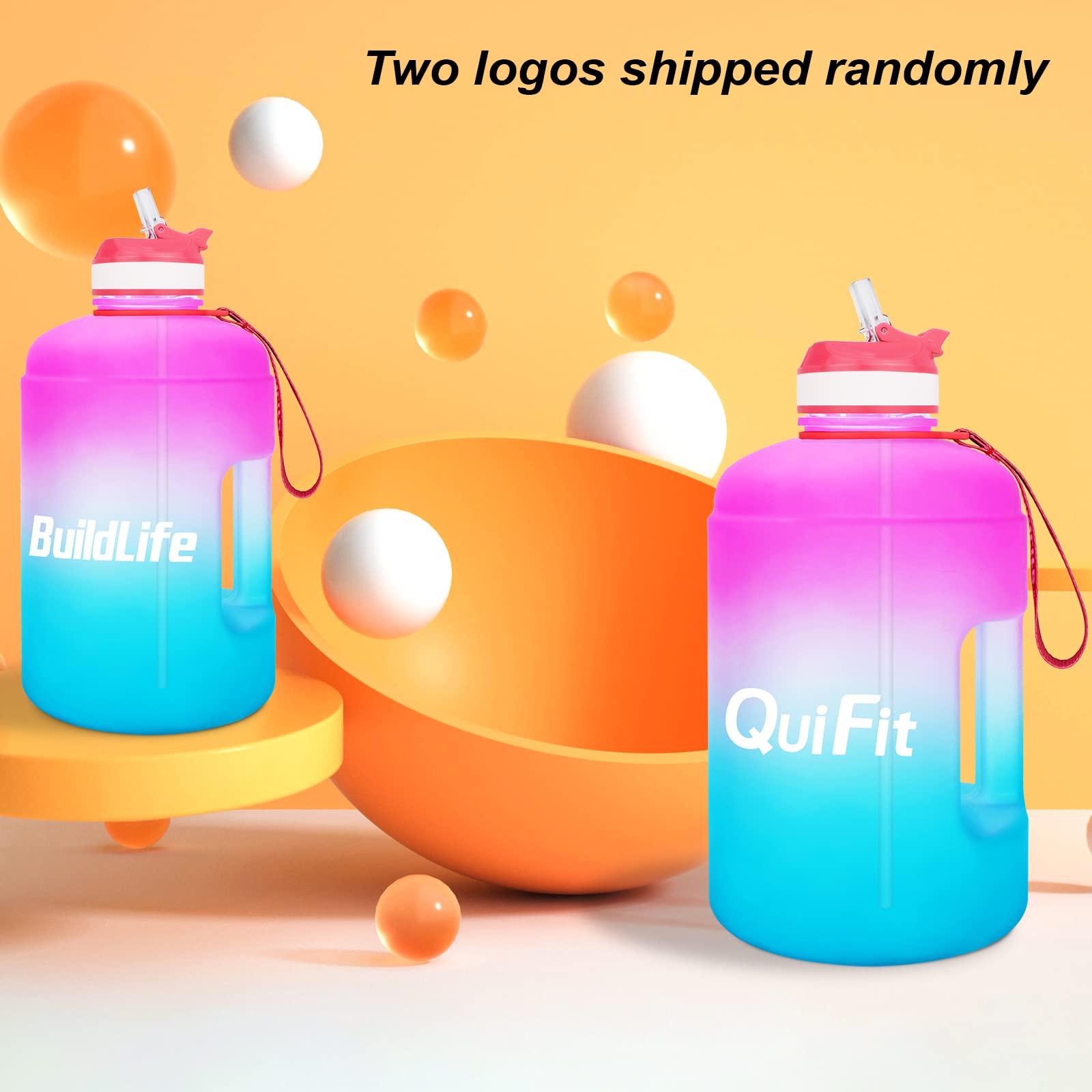 QuiFit Motivational Gallon Water Bottle - with Straw & Time Marker BPA Free Large Reusable Sport Water Jug with Handle for Fitness Outdoor Enthusiasts Leak-Proof (Pink/Blue,1 gallon)