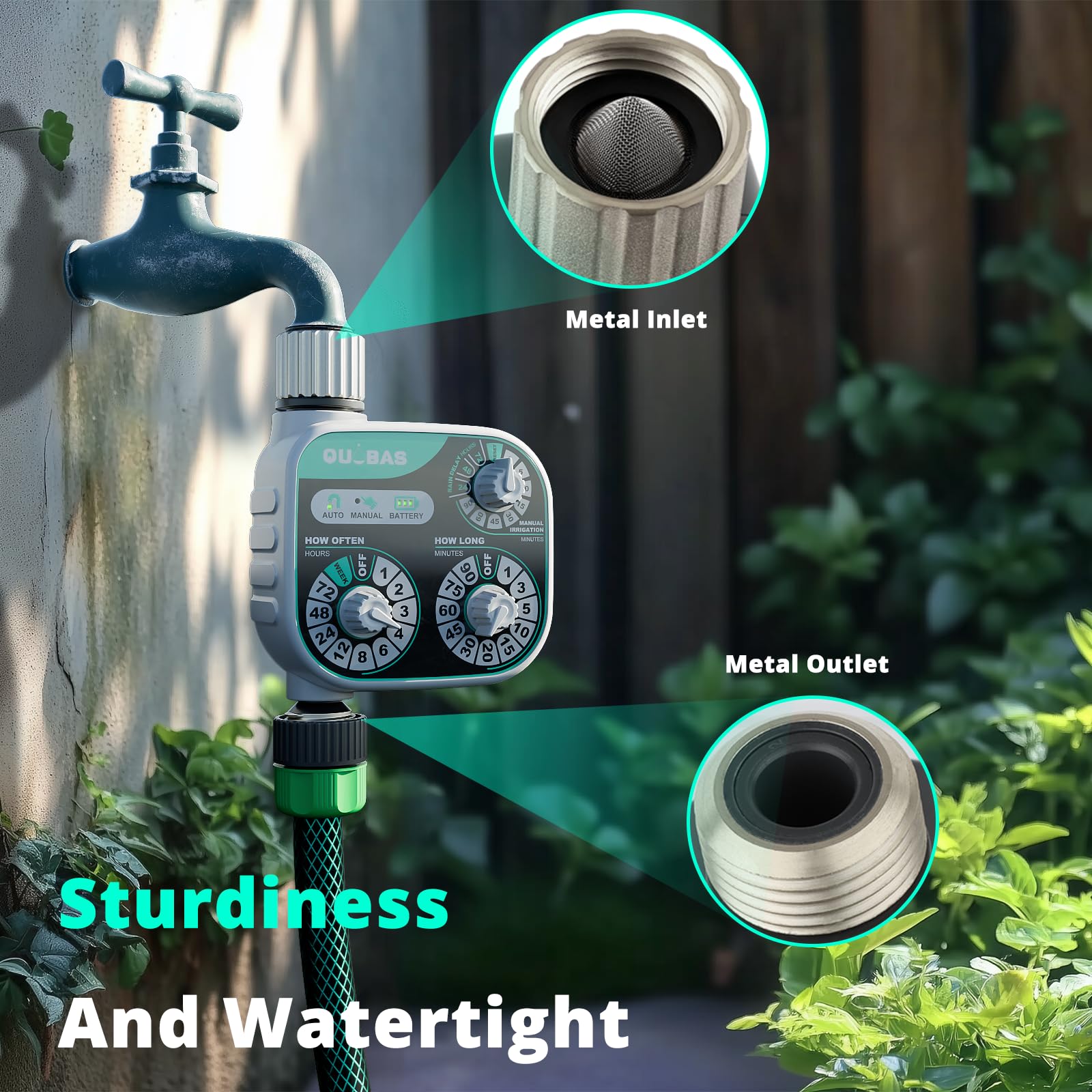 QUOBAS 3-Dial Analog Water Timer, Mechnical Control Automatic Sprinkler Timer with Manual and Rain Delay, for Garden Hose Watering, Drip Irrigation, Self-Watering System, Easy to Set Up