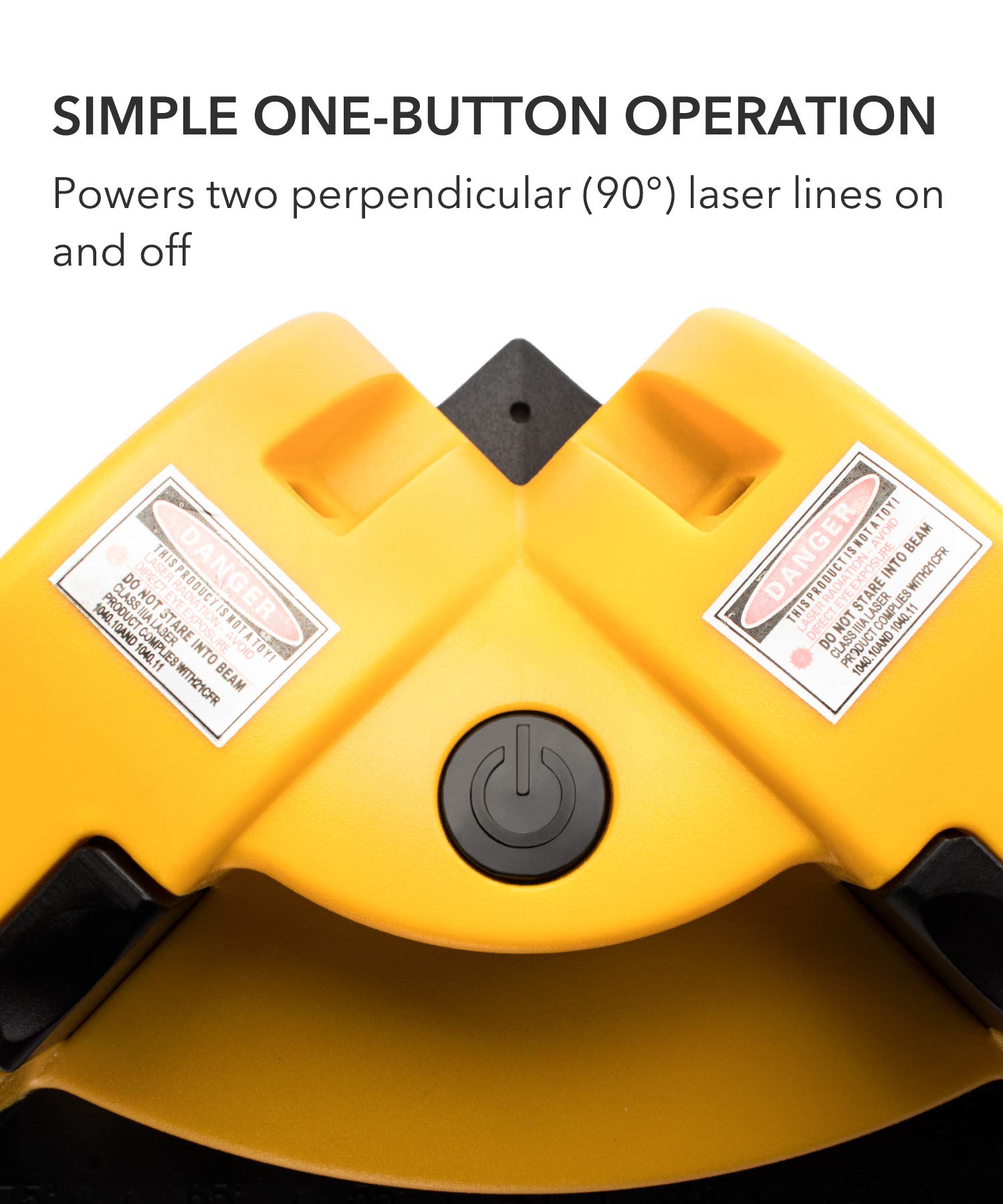 • Handy and compact laser level tool that can generates two lines on the floor, wall or other surface at 90 degree angles to help you square, align and angle at 90 degrees for surface layout including tile, picture, stone, brick, carpet, hardwood flooring and more
