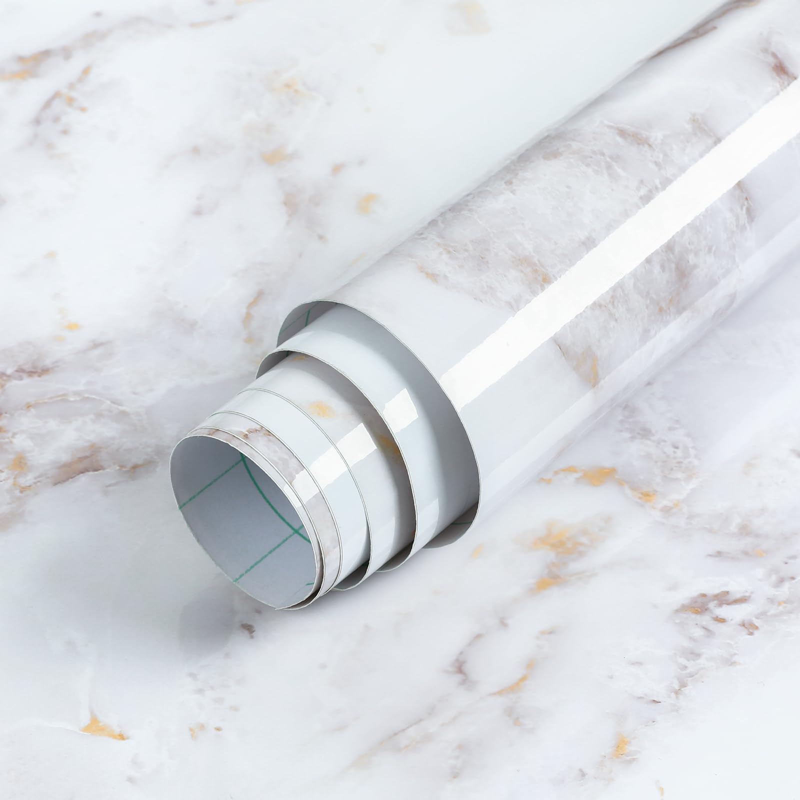 • Glossy Marble Wallpaper: Roll of 17.5 inches x 78.7 inches in glossy marble contact paper. Material: PVC, self-adhesive (no extra glue needed). Our contact paper is available in various roll sizes, providing flexibility for covering areas both small and large