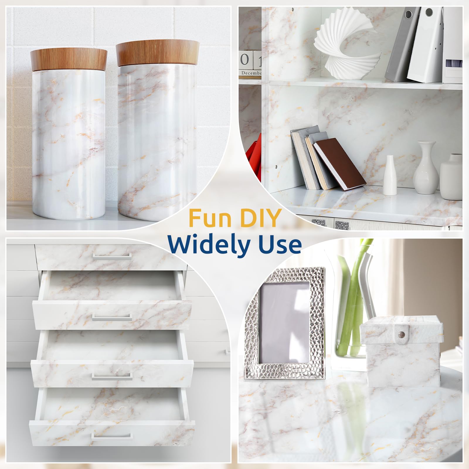 • Multiple Use: Not just for countertop, our marble contact paper can also restoring old furniture or covering smooth surfaces, widely used on cabinets, drawers, backsplash, shelves, tables, craft, door and even wall, helps to levate your creative decor effortlessly