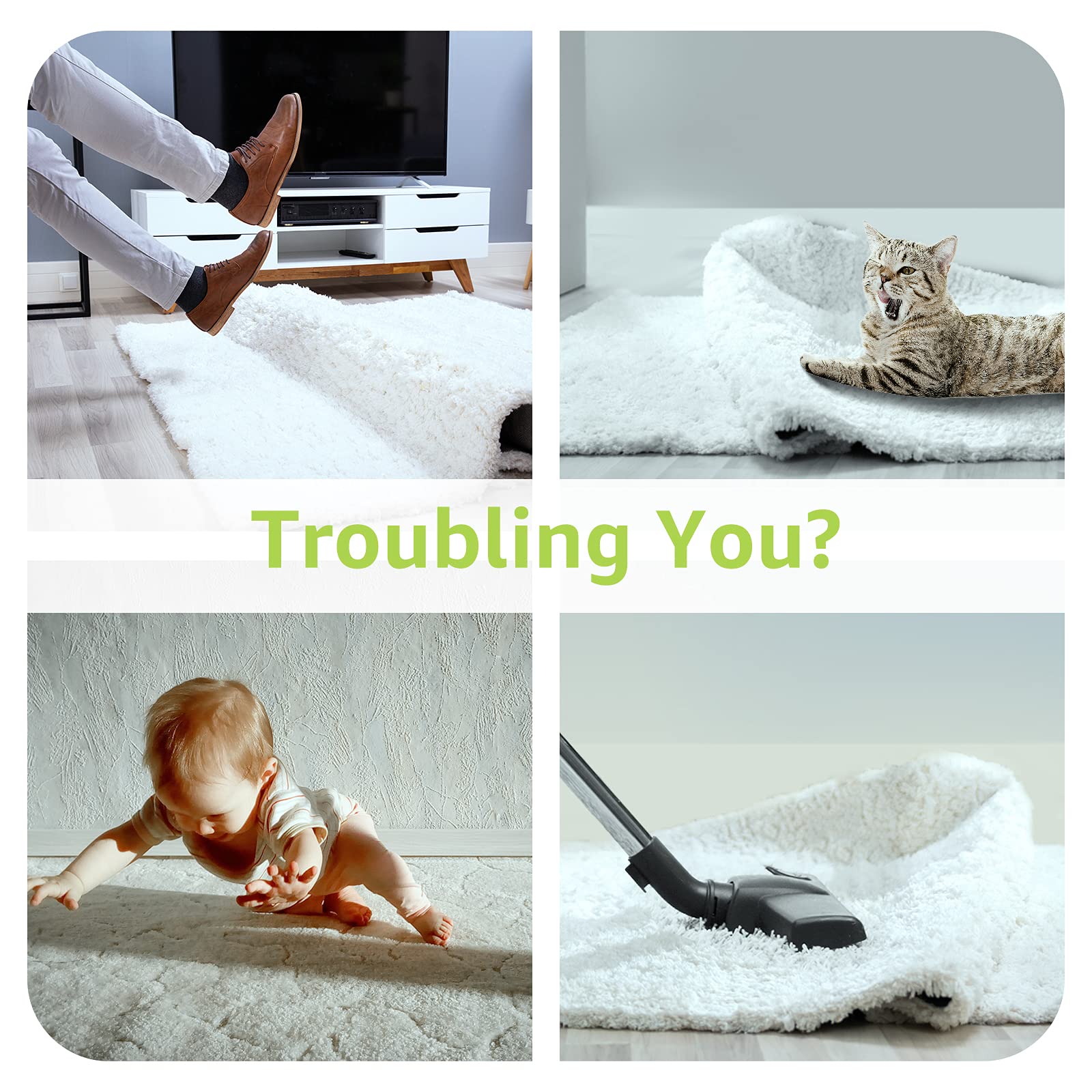 • Easy Installation: The non slip adhesive rug pads are with dual-side stickers, separately in white and clear color. First, peel off the white sticker and stick the rug pads on the bottom of your area rug. Second, peel off the clear film and stick the rug pads on the floor. Third, press hard to make sure they paste firmly. Note: Must Clean the contact surfaces of the rugs and floors before sticking