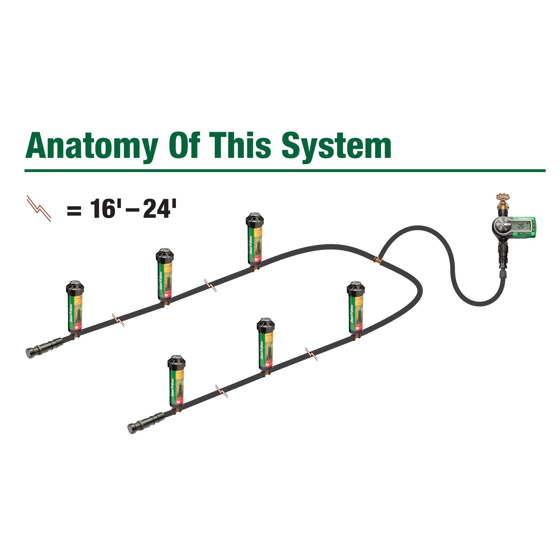 DON'T EXPAND SYSTEM: adding extra tubing or rotors can negatively impact performance = reduced spray distance, rotors won't pop-up or rotate
