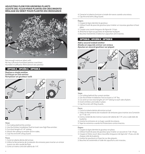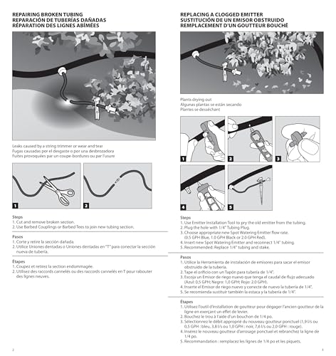 Includes trouble-shooting guide with tips on how to adjust flow or fix clogs and breaks