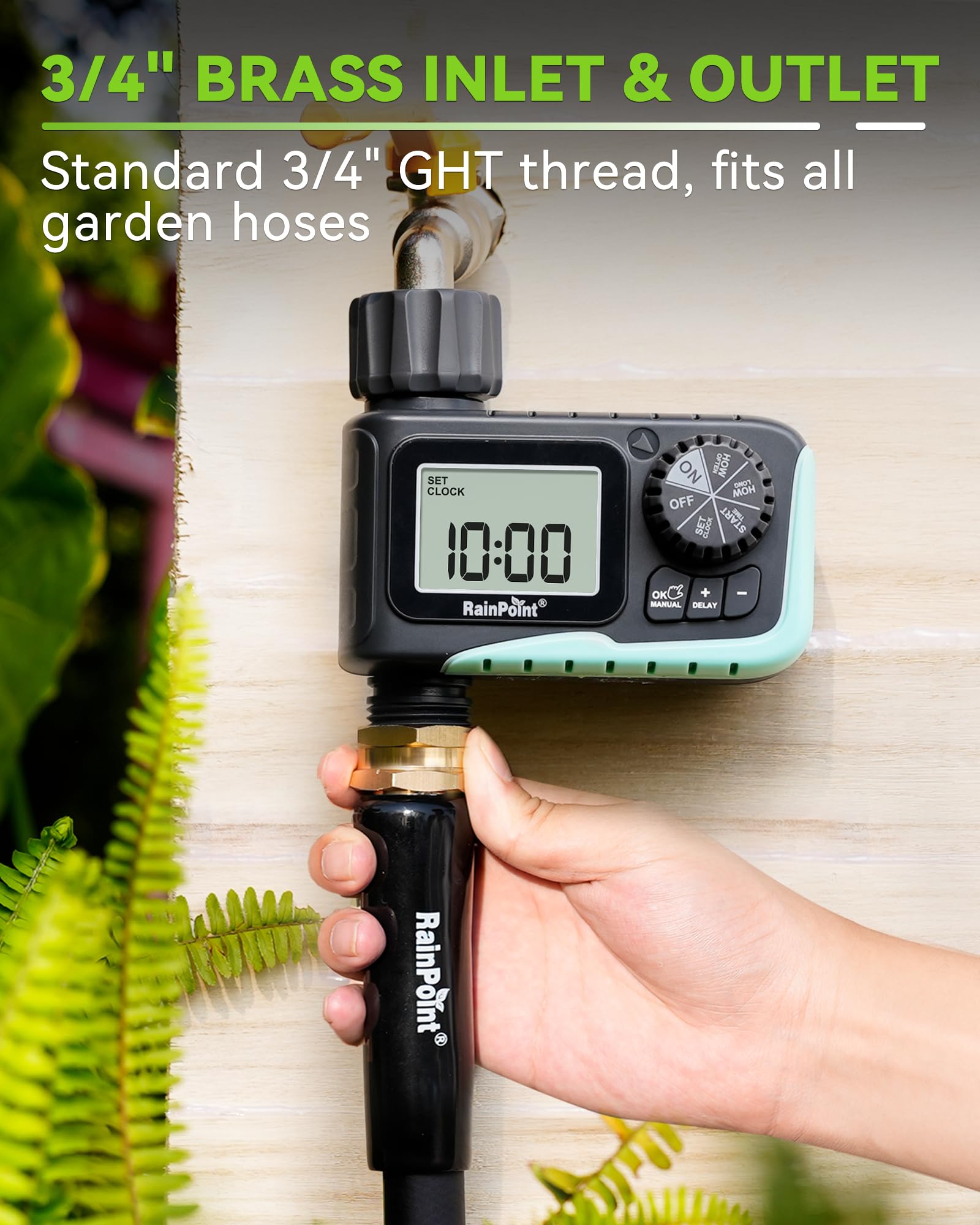 RAINPOINT Sprinkler Timer, Programmable Water Timer for Garden Hose, Outdoor Soaker Hose Timed with Rain Delay/Manual/Automatic Watering System, Digital Irrigation for Yard, Lawn, 1 Outlet