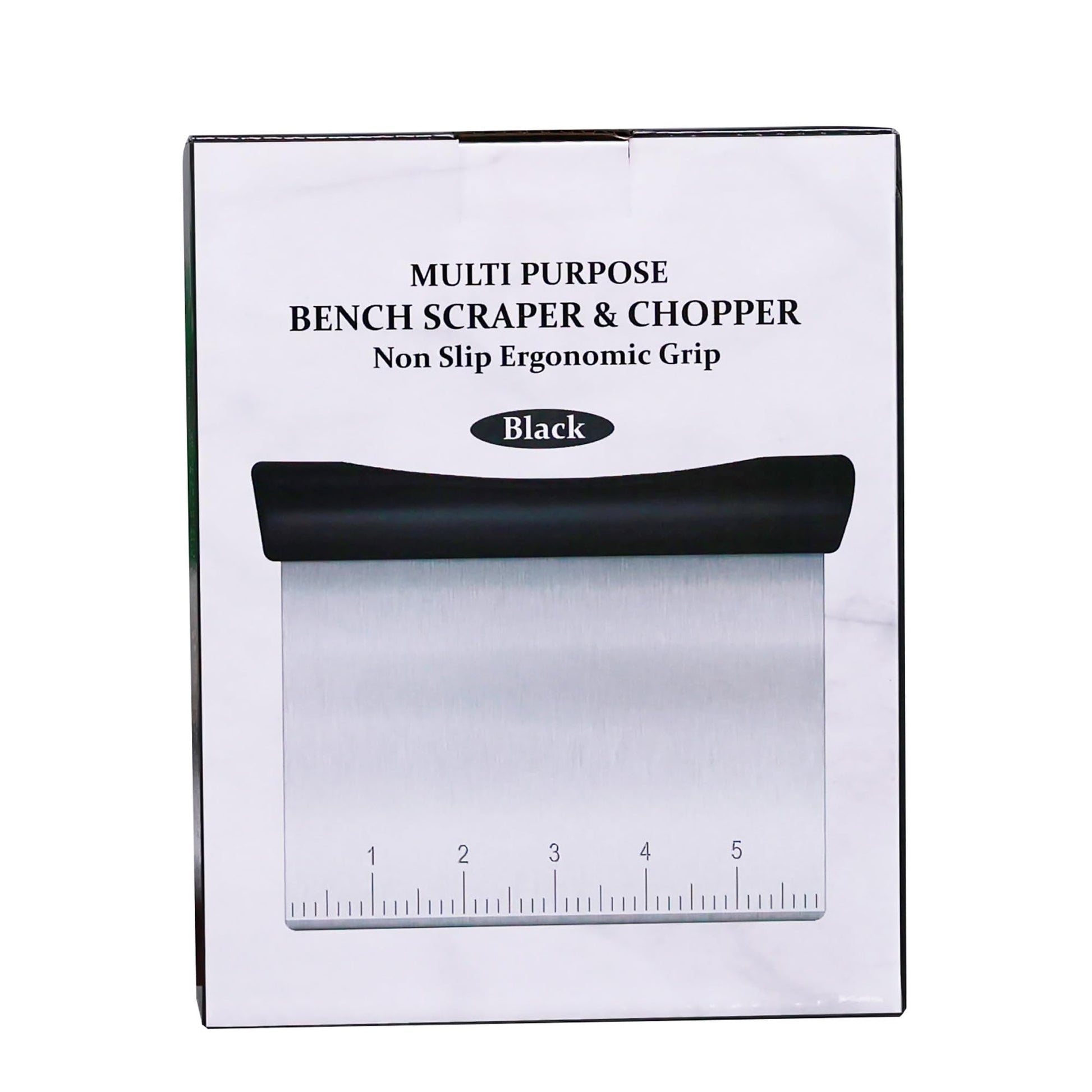 Rainspire Bench Scraper, Stainless Steel Dough Scraper, Pastry Scraper, Pizza and Dough Cutter Multi-Purpose Scraper/Chopper, Pizza Cutter Food Chopper Baking Supplies Kitchen Gadgets, Black